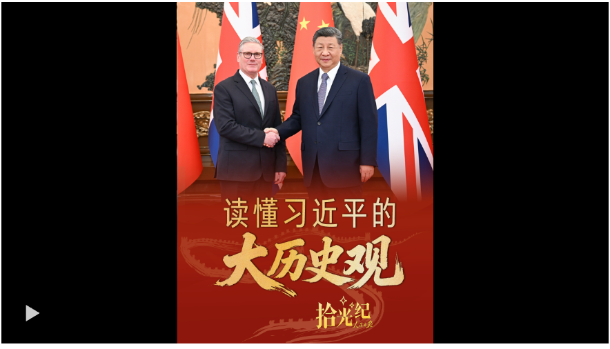 “中国始终站在历史正确一边”。面对时代之问,习近平主席的回答是“各国人民对美好生活的向往就是我们的追求”。1月29日,会见英国首相斯塔默时,习近平指出,“秉持大历史观,超越分歧、相互尊重,就能交出经得起历史检验的答卷。”