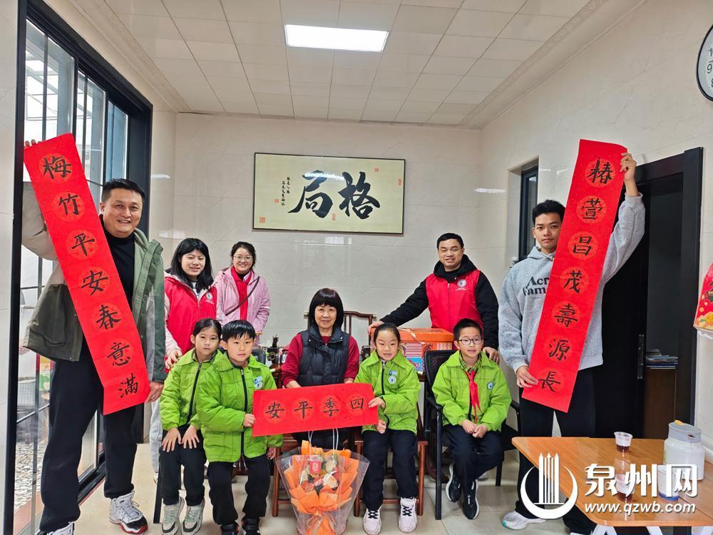 泉州网2月3日讯(融媒体记者 林志安)春节临近,暖意融融。1月31日,泉州各小学迎来寒假第一天,鲤城区实验小学的60多个学生在老师和家长们的带领下完成了一份特殊的寒假“作业”——分别前往近百位退休老师的家中慰问,送去美好的新春祝福。