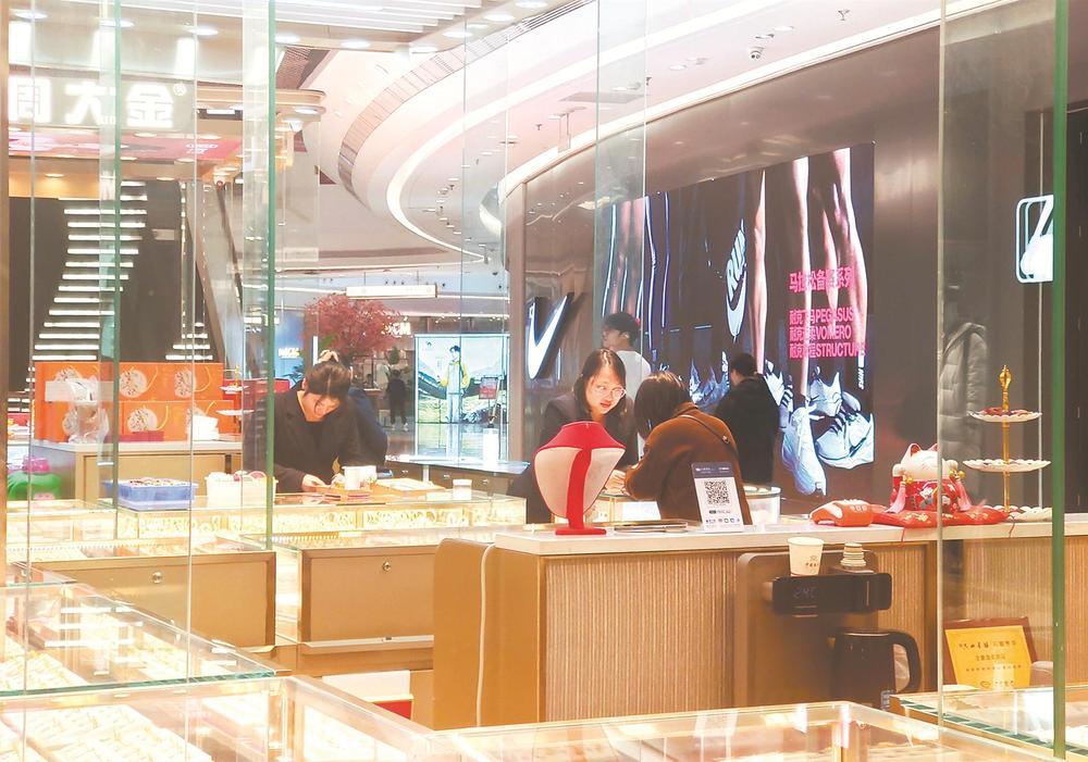 昨日下午,记者走访我市多个商圈发现,尽管当日金价出现明显下调且正值工作日,黄金消费市场依然吸引了不少市民前来选购。