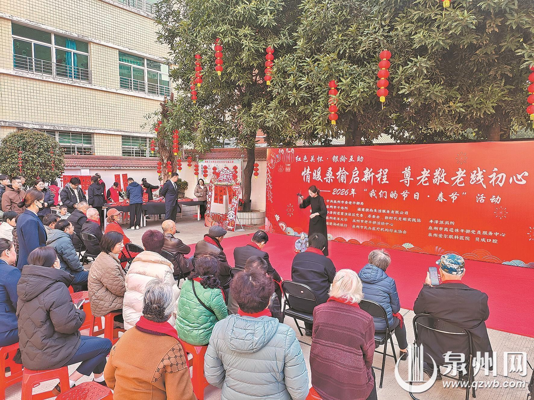 泉州网2月4日讯(融媒体记者王树帆 通讯员刘江平 文/图)新春佳节临近,2月3日上午,泉州市干休所大院内暖意融融、笑语阵阵,“情暖桑榆启新程 尊老敬老践初心”2026年“我们的节日·春节”主题活动在此举行。市干休所住所离退休干部、老干部遗偶,干休所退休人员,以及志愿者、干休所居民群众等欢聚一堂,共迎新春。