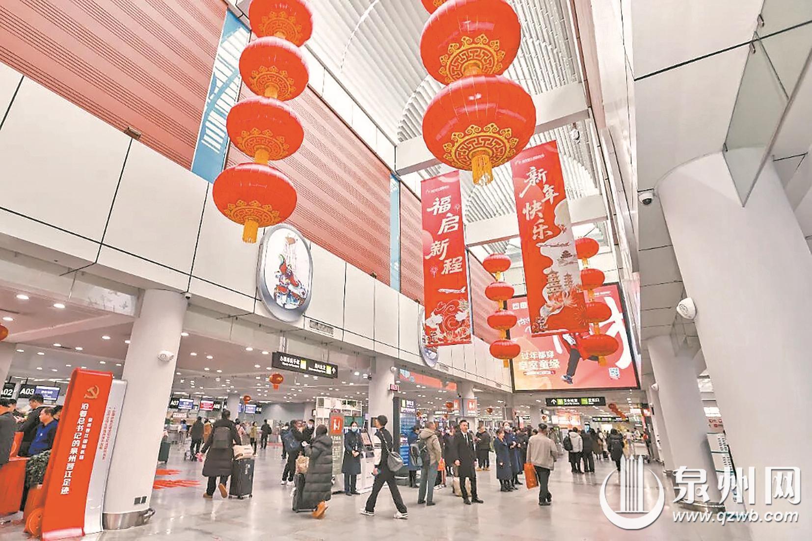 记者在泉州南站看到,车站候车室内张灯结彩、年味盎然。泉州南站着力复刻地道的闽南年俗场景,向南来北往的旅客展示高甲戏、布袋木偶戏等传统艺术,为归乡旅客送上马年新春的美好祝福。今年春运,泉州南站依托2026年铁路新图优化运力资源,新增福州至香港西九龙高铁停靠、增开汕头方向列车,进一步织密出行线路,满足旅客多样化需求。“接下来,车站将持续聚焦旅客出行需求,细化各项服务保障措施,在做好客流疏导、安全保障的基础上,推出更多有温度、有特色的服务,全力打造平安、有序、温馨的春运环境,让每一位旅客都能带着马年的美好祝福,平安、顺畅奔赴团圆。”泉州南站党支部书记范敏说。