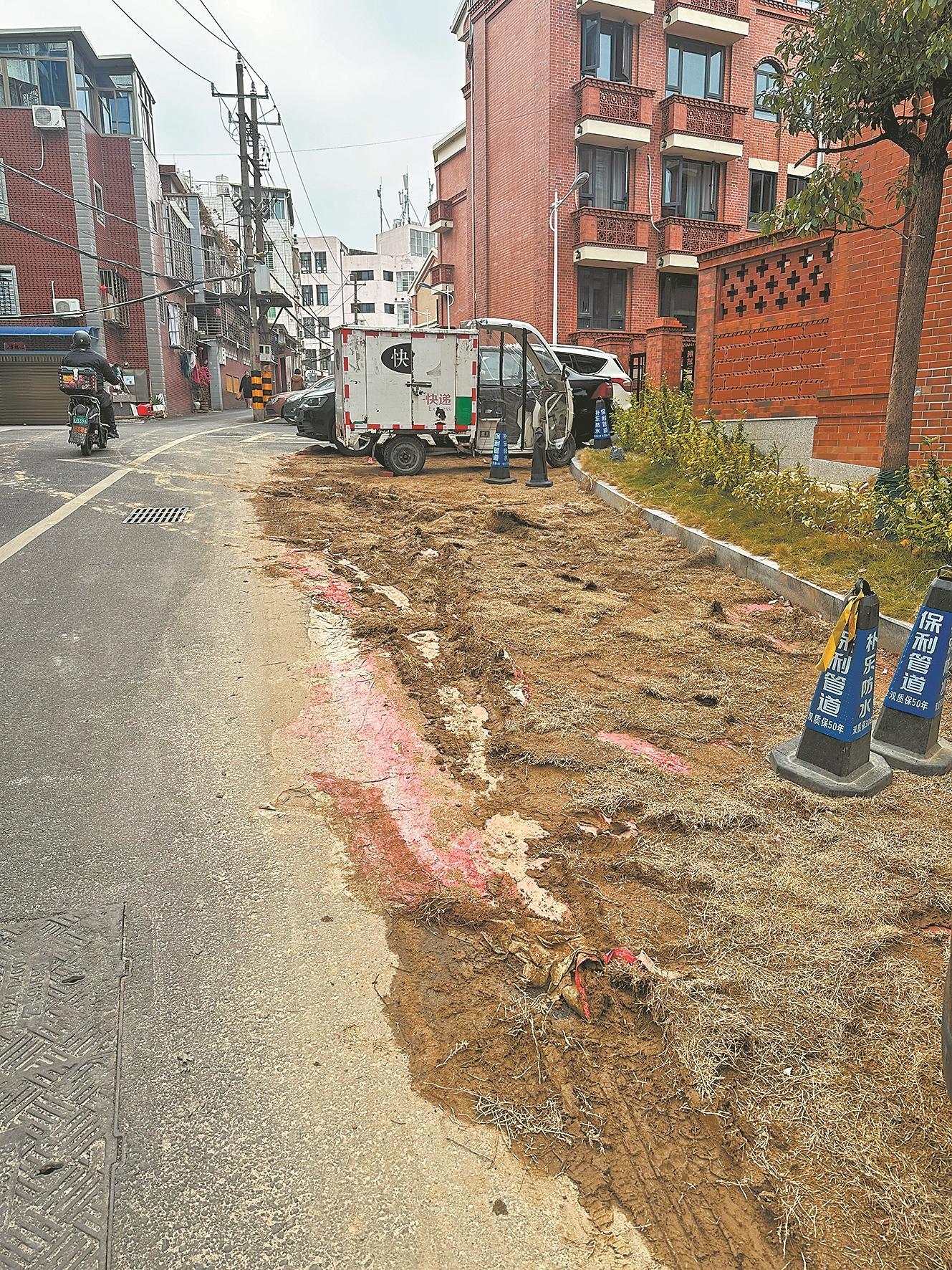 泉州网2月4日讯(融媒体记者张小玲 文/图)近日,市民吴女士致电泉州晚报社24小时热线96339反映,上个月,鲤城区河岭巷18号和城建·开元里之间的沥青路路边种了草皮,目前这些草皮均已枯死,既不美观,也给周边居民带来困扰。