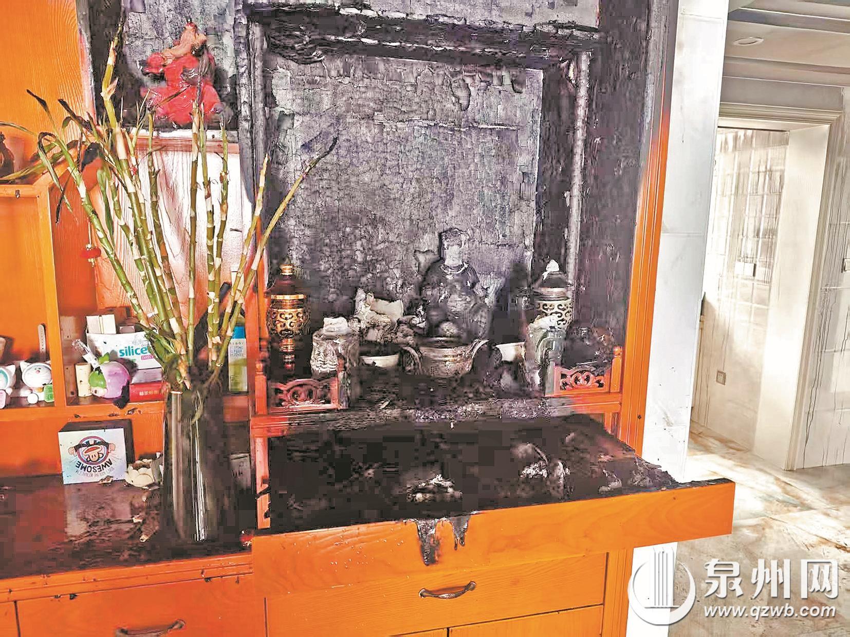 无独有偶,1月28日,晋江市深沪镇一民房突发火灾,起火产生的浓烟和烧焦味,呛醒了正在午睡的户主蔡先生。消防员接警后及时到场成功扑灭明火,所幸无人员伤亡。经了解,起火原因疑似为户主在佛龛点燃香烛明火引燃桌上供品的纸质包装,后又引燃了木质佛龛及佛像。