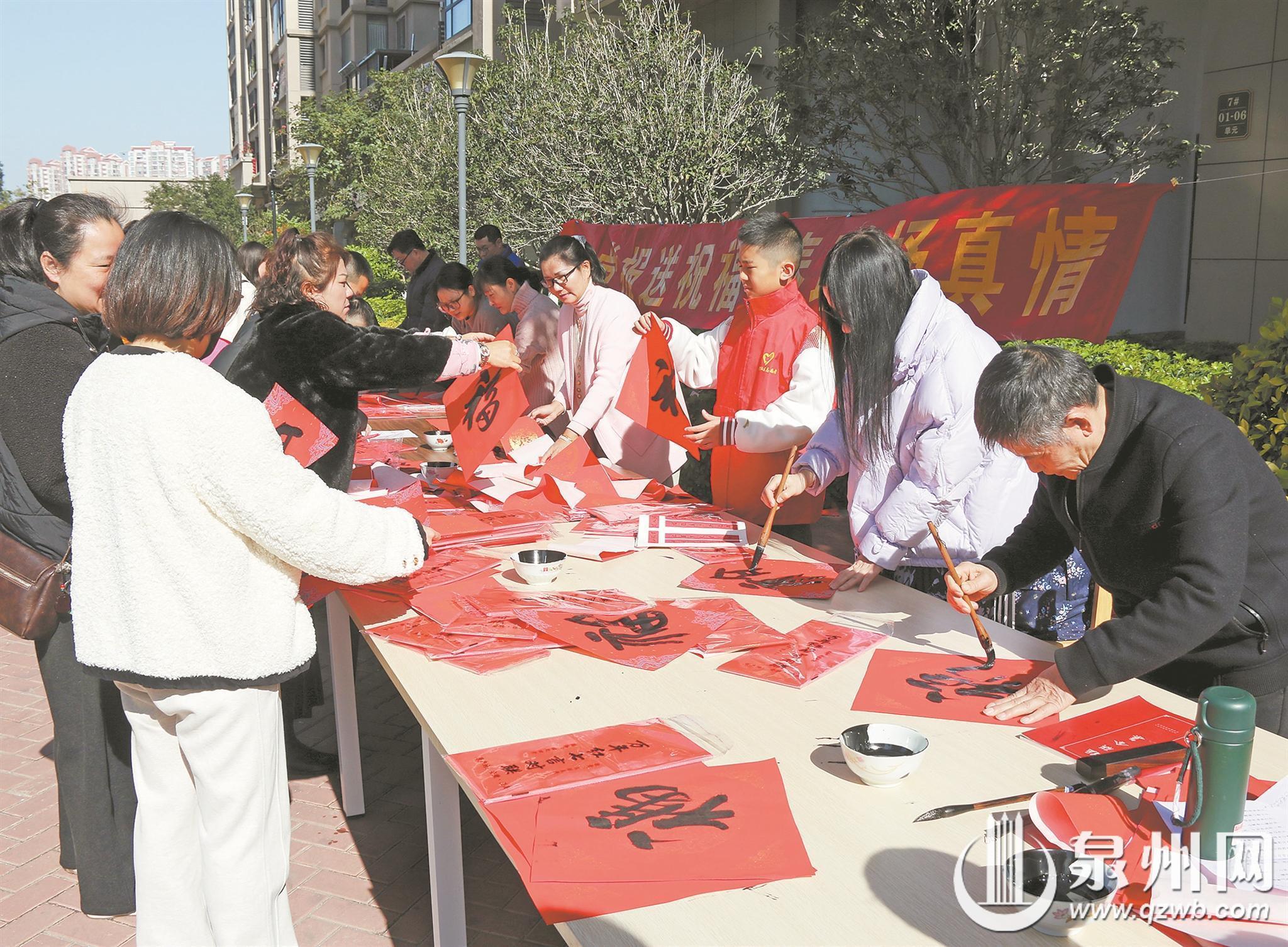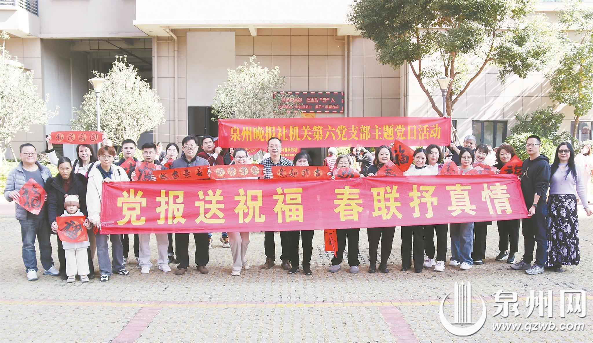 恰逢立春暖意起,墨香氤氲迎新春。昨日,中共泉州晚报社机关第六支部联合丰泽区委宣传部、丰泽区文联和北峰街道新时代文明实践所,走进招贤社区正祥丰屋小区,开展“党报送祝福 春联抒真情”主题党日活动,将报社党建工作与弘扬传统文化、服务群众深度融合,在“新春走基层”的脚步声中,传递热气腾腾的年味和祝福。