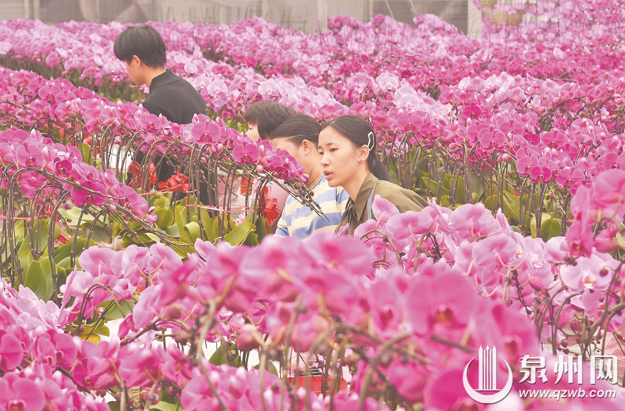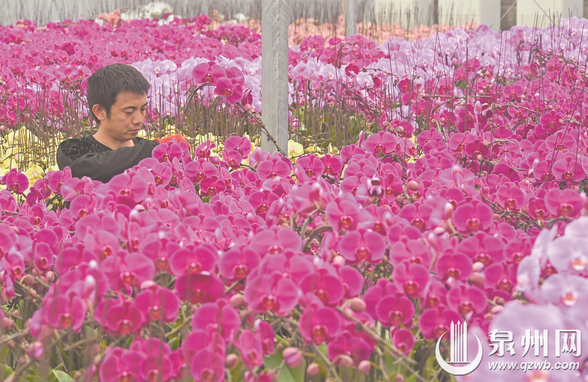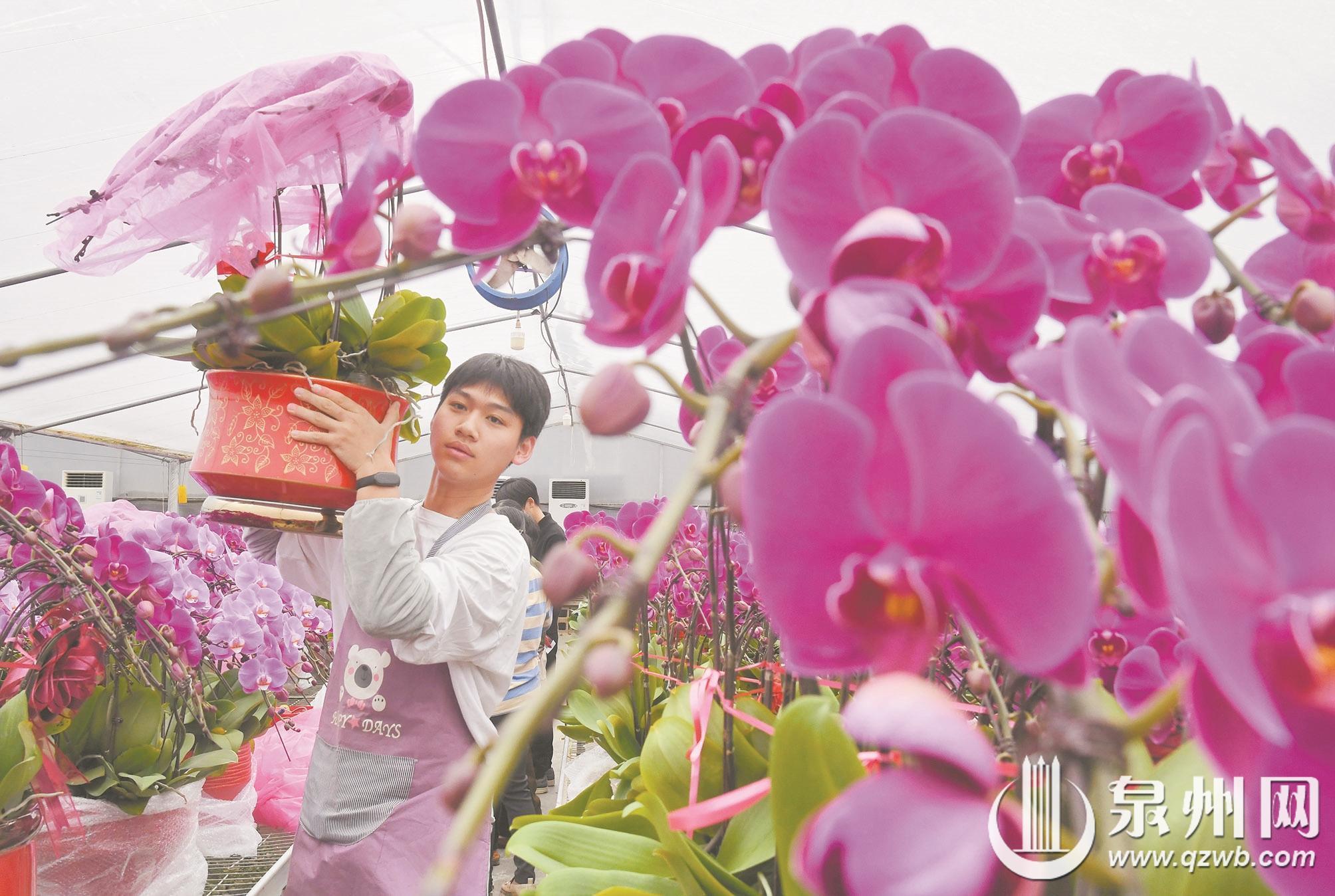 春节临近,泉港区一园艺基地的温室大棚内,蝴蝶兰、马蹄莲、小橘灯等数十种花卉竞相绽放、吐露芬芳。工人们有条不紊地开展管护、整理、装箱、外运等工作,全力保障鲜花及时送达年节市场。暖意融融的花棚里,一派繁忙的景象,浓浓的年味也随花香扑面而来。