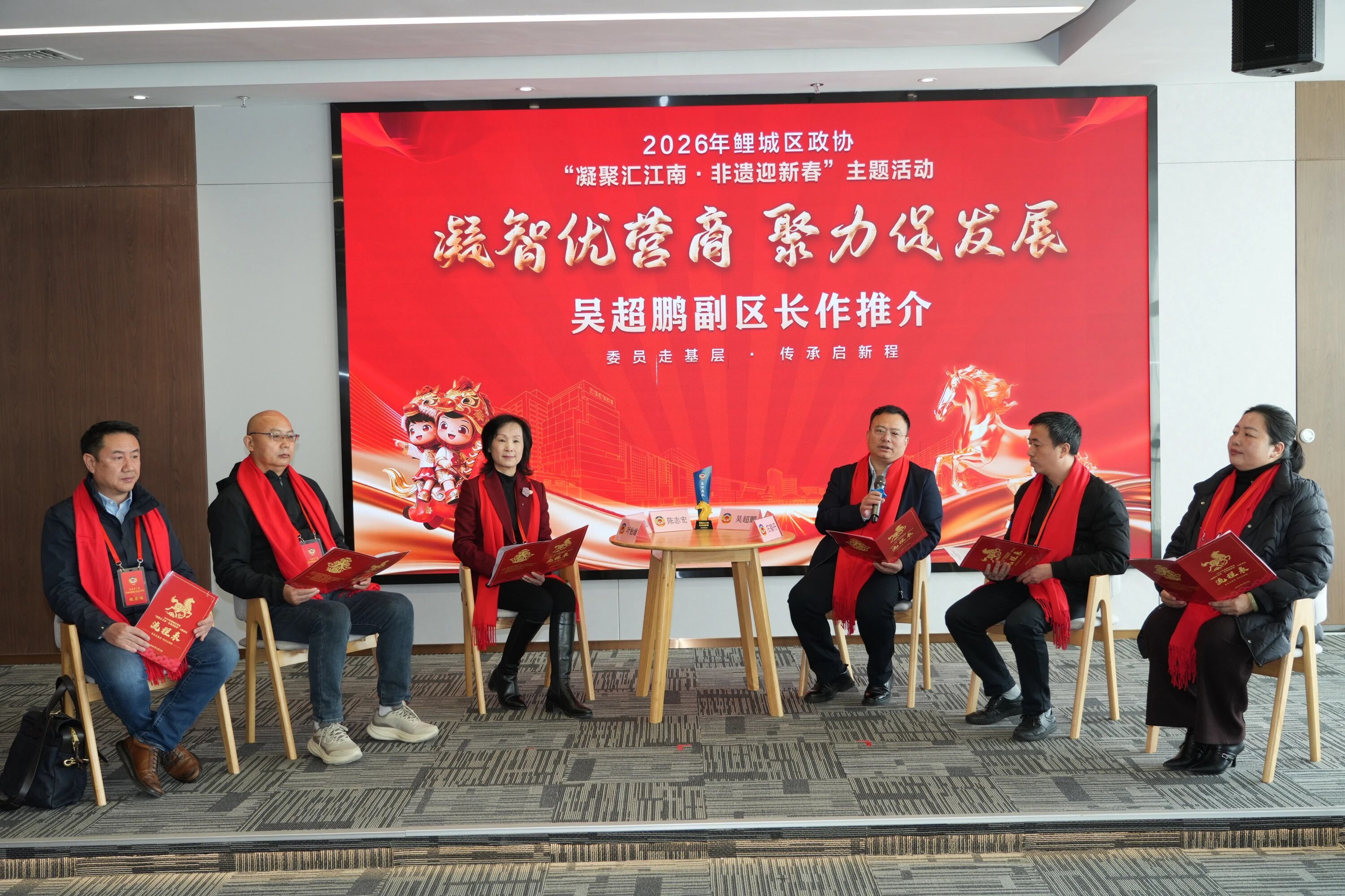 “这场‘科创+非遗’的迎新春活动,是鲤城区政协围绕中心、服务大局,团结各界、服务基层的一次生动实践。”区政协主席苏培聪表示,当前鲤城正深入实施“活古城”“战江南”双轮驱动,以“文化过江、产业兴区”推动江南新区向“创新高地”跨越。区政协将继续发挥优势,引导委员积极履职,当好联系群众、反映诉求的“联络员”,深入调研、建言献策的“参谋员”,宣传政策、汇聚资源的“宣传员”,以及监督护航、助企发展的“护航员”,促进传统文化与现代生活、产业创新深度融合,为鲤城高质量发展注入更多政协智慧和力量。