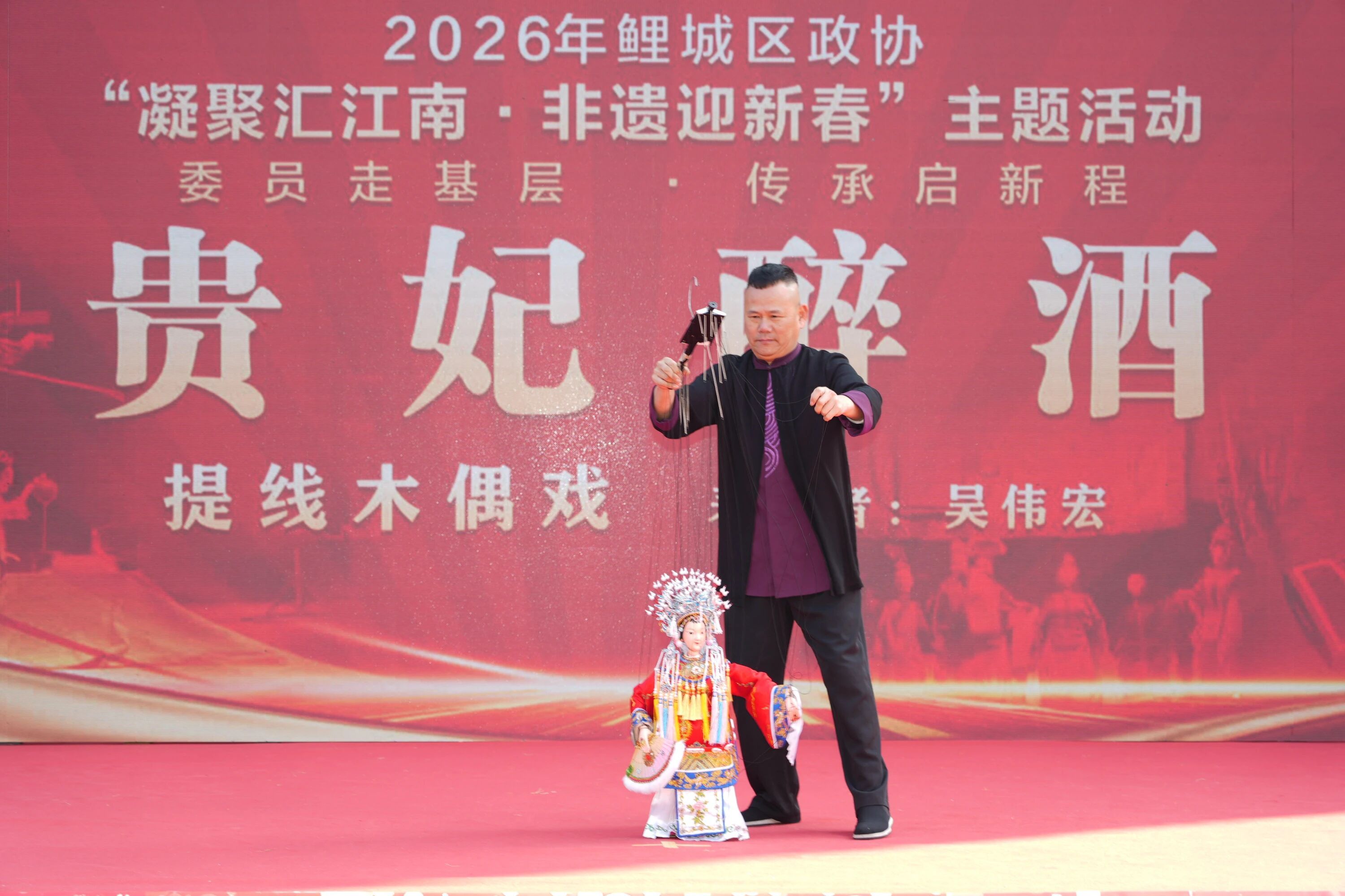 活动在“非遗新春”文化展演中拉开帷幕。舞蹈《策马奔腾》、吉他弹唱《朋友》、二胡齐奏《赛马》、提线木偶戏《贵妃醉酒》、小组唱《蓝蓝泉州湾》、闽南语歌曲《鲤赞》、民俗舞蹈《招宝侍郎逛元宵》等节目轮番上演,为在场市、区两级政协委员和园区企业员工献上一场充满闽南风韵的文化盛宴。