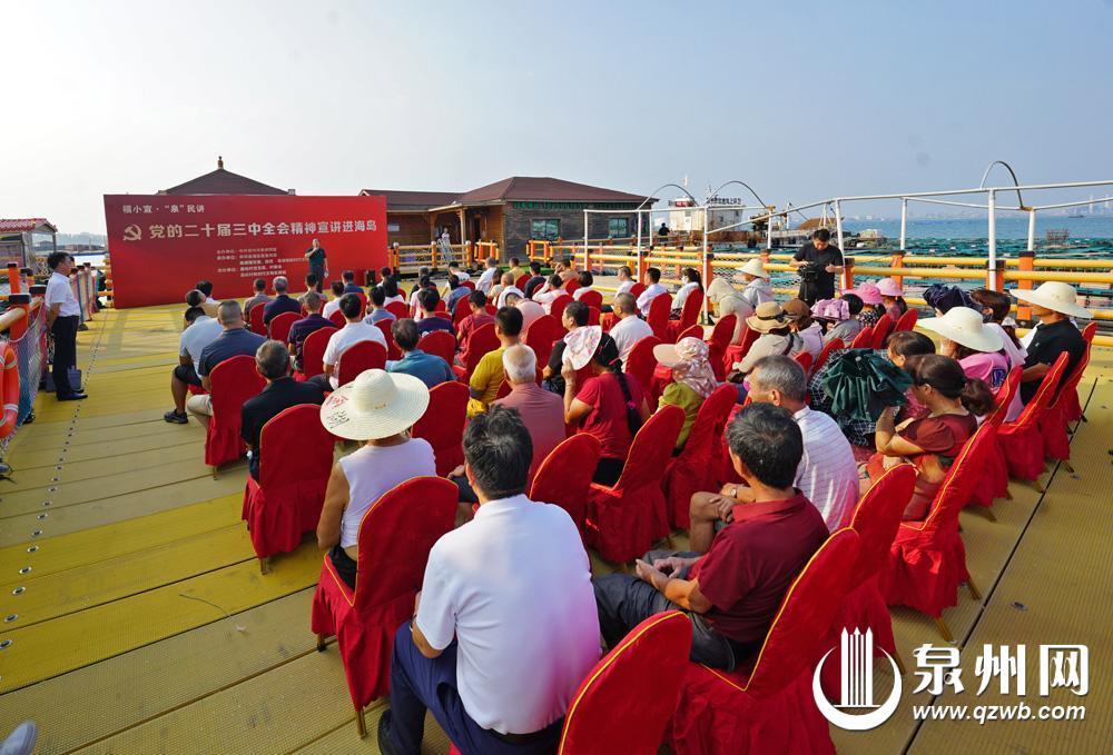 2024年9月11日,“福小宣·‘泉’民讲·党的二十届三中全会精神宣讲进海岛”泉港专场活动在泉港区南埔镇惠屿村渔排理论宣讲平台开展。(洪坤泽 摄)