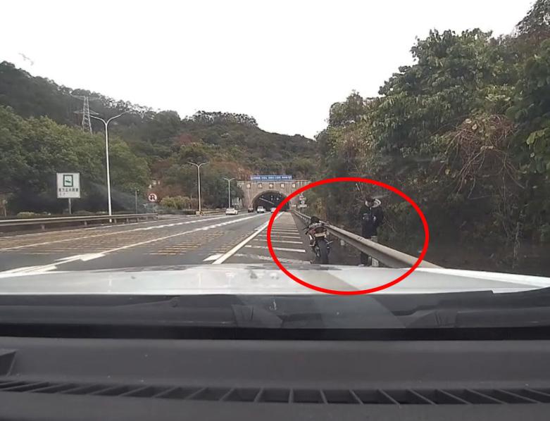 摩托车在高速上发生故障,郑某无奈报警求助。