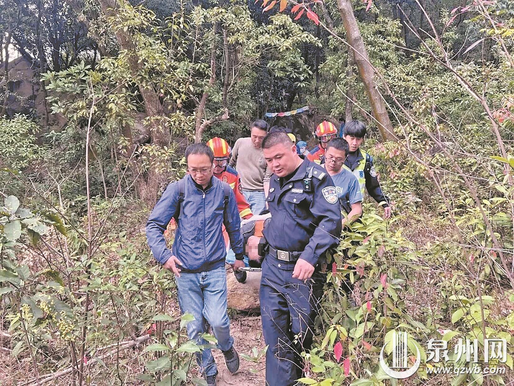 时间回溯到元旦清晨,在南安市雪峰寺后山,南安一小学教师刘女士与4位同事组团登山健行。9时许,下山返程途中,行至一段陡坡路段时,刘女士脚下一滑重重摔倒,疼痛难忍无法站立。同伴紧急拨打电话求救,等待救援人员赶来。