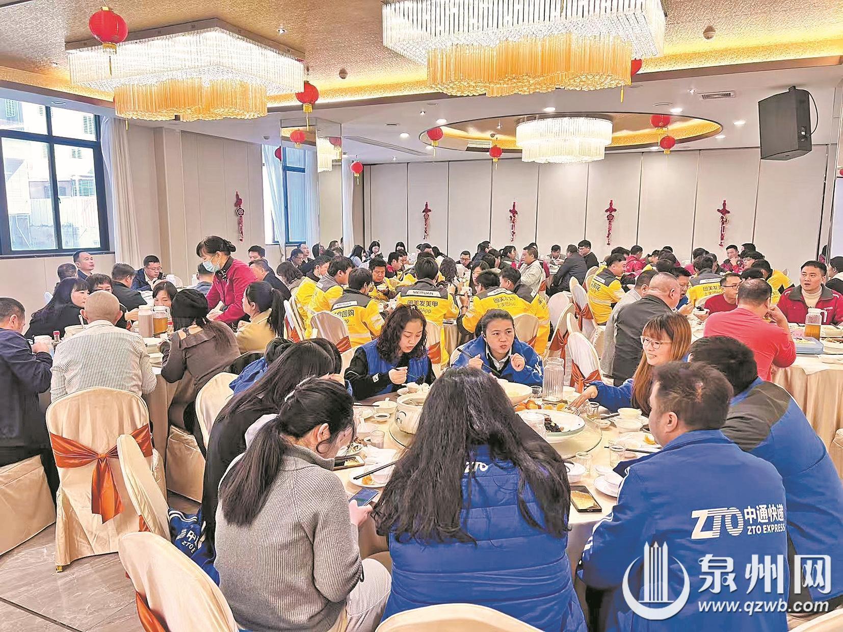 泉州网2月7日讯 (融媒体记者许奕梅 通讯员庄璇娟 肖苏文 文/图)新春将至,万家团圆之时,总有一群劳动者坚守岗位、留守他乡,用奉献守护城市暖意。2月4日,泉州台商投资区总工会举办“情暖台商区·马年共团圆”年夜饭活动,邀请100名春节期间将坚守岗位的外卖配送员、快递员、货车司机等新就业形态劳动者职工代表欢聚一堂,以“娘家人”的温情守护,让异乡坚守者在第二故乡度过一个暖心祥和的春节。