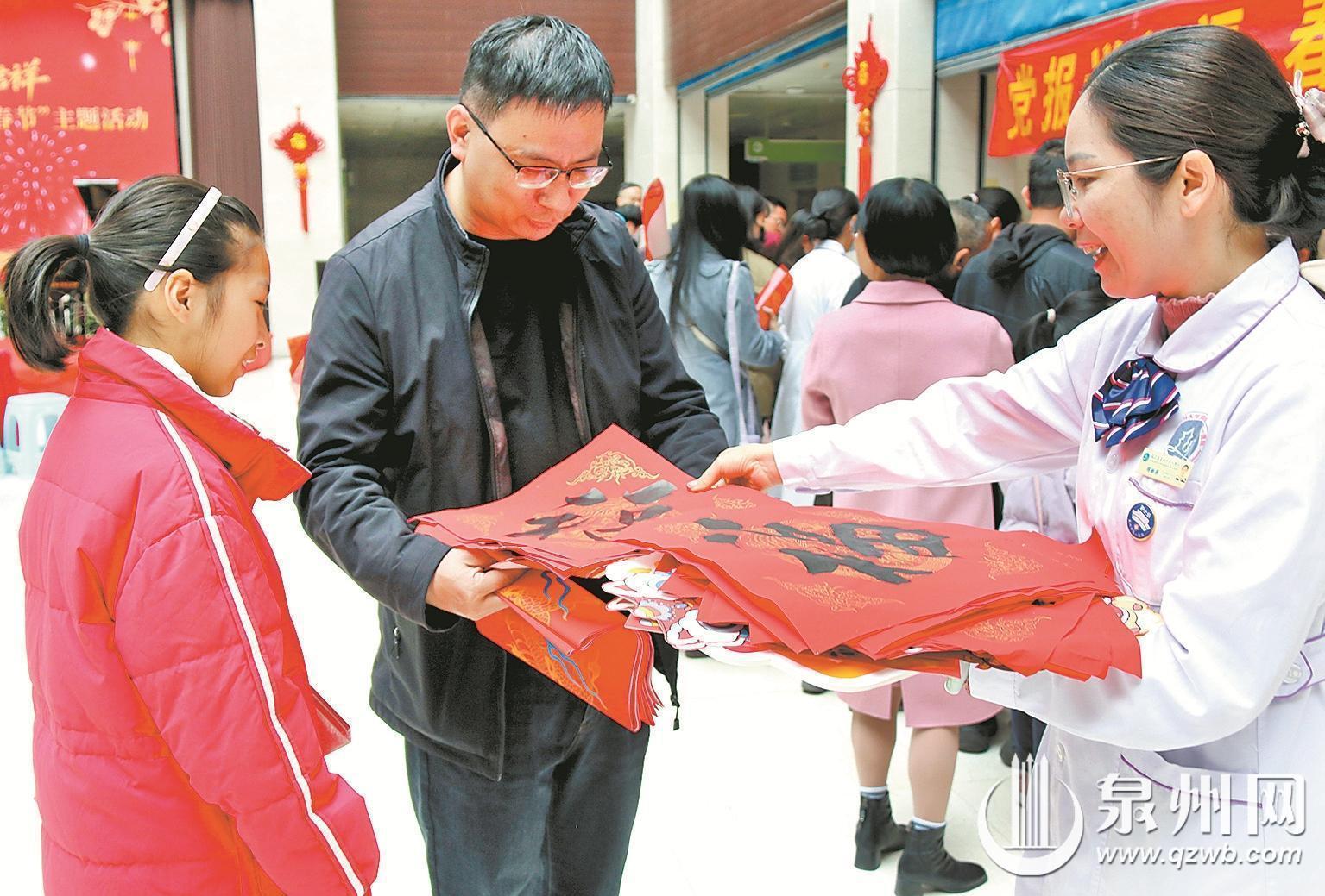 昨日上午,泉州市第一医院城东院区洋溢着温馨祥和的新春氛围,“党报送祝福 春联抒真情”活动走进该院,同期还举行了“我们的节日·春节”主题活动。活动以“管弦奏新韵 笔墨绘吉祥”为主题,将新春音乐会、手写春联、趣味互动等特色环节相融合,为坚守岗位的医护人员、就诊患者及家属送上满满的新春祝福,让墨香与暖意萦绕医院各个角落。