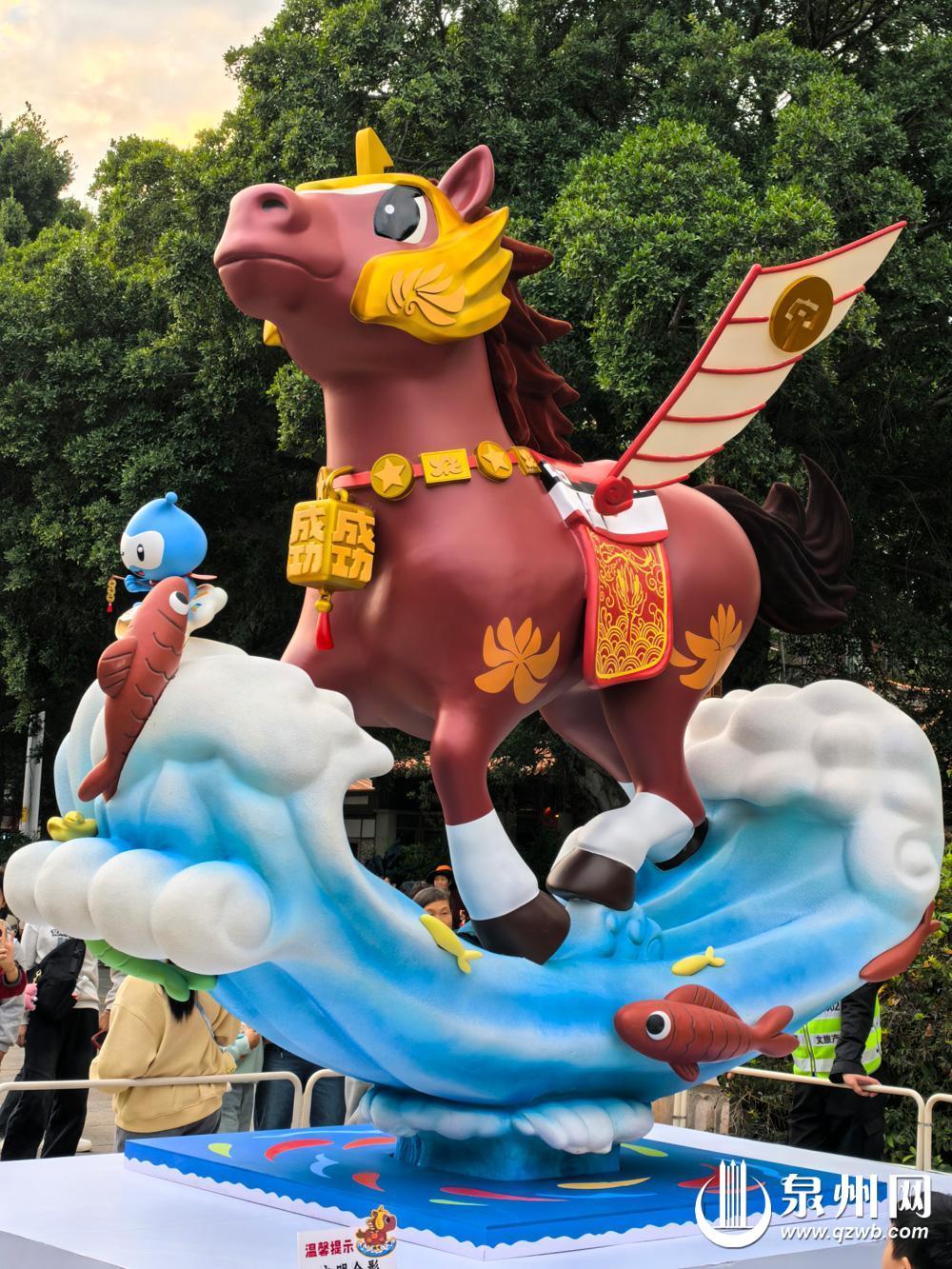府文庙广场,“六合同风马”泉州古城生肖IP装置之寓意“马上成功”的“天·召召”。(肖娜霞 摄)