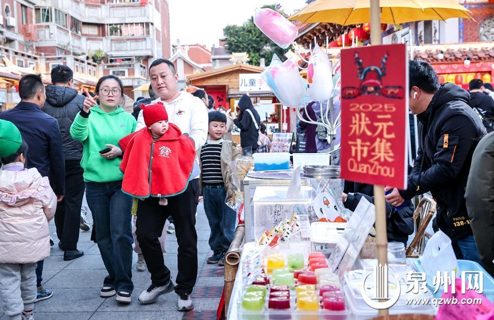 每年春节期间,泉州古城市集美食都会吸引大波市民游客。(林劲峰 摄)