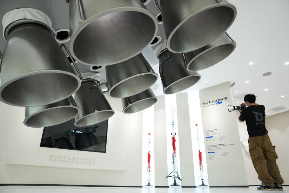 强化产业圈联动发展,是北京持续提升科技成果区域内转化效率和比重的有效举措。以商业航天产业为例,目前,扎根北京的商业航天百强企业、上市企业和独角兽企业约占全国半壁江山。产业链覆盖运载火箭、卫星制造、地面站及终端设备、卫星应用服务全领域。这是2025年6月18日在北京经济技术开发区蓝箭航天空间科技股份有限公司拍摄的朱雀系列运载火箭模型。