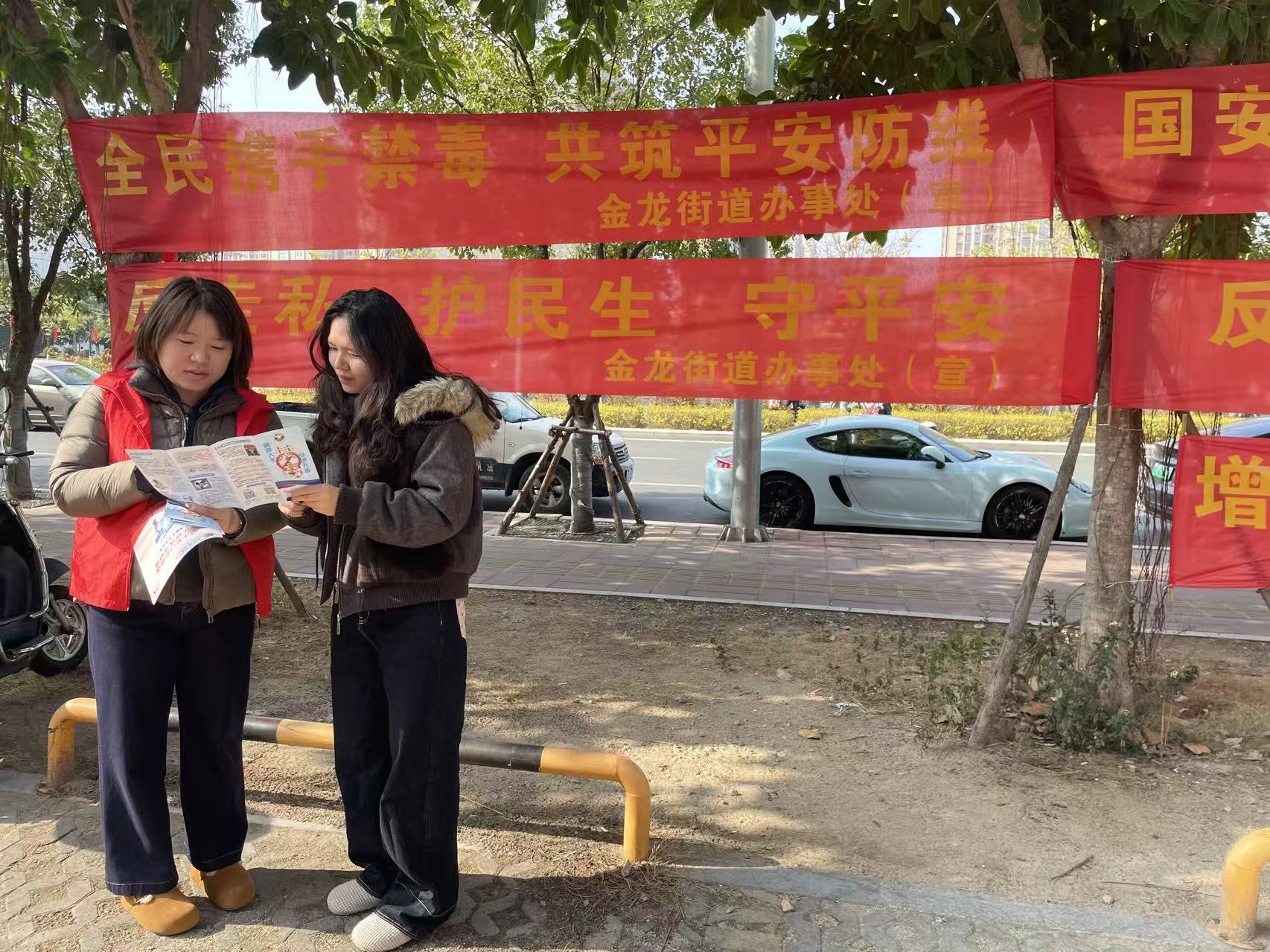 新春将至,务工人员陆续返乡,为筑牢全民禁毒防线,保障居民群众度过平安祥和的团圆佳节,金龙街道办事处联合鲤城分局禁毒大队,组织开展节前禁毒宣传活动,切实提升居民群众识毒、防毒、拒毒意识。