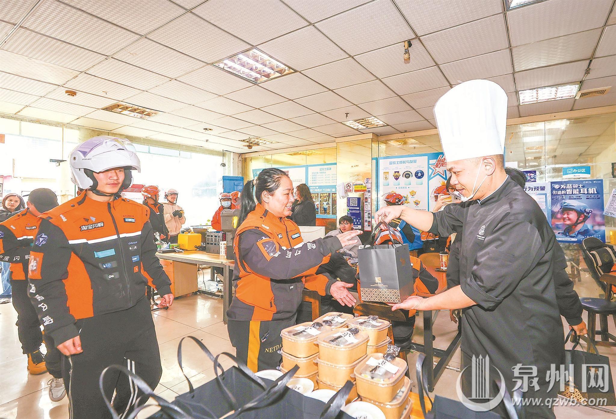 春临岁末,暖意先行。作为晋江深耕十三载的品牌公益活动,“致敬劳动者·温暖一座城”2026暖冬行动持续传递温情,为快递员、外卖配送员等新就业群体送上500份精心制作的寿司与甜汤,将新春的美好祝福送到城市奔波者手中。自2014年启动以来,“致敬劳动者·温暖一座城”暖冬行动累计募集善款及物资超400万元。 (融媒体记者许雅玲 通讯员张思萍 摄)