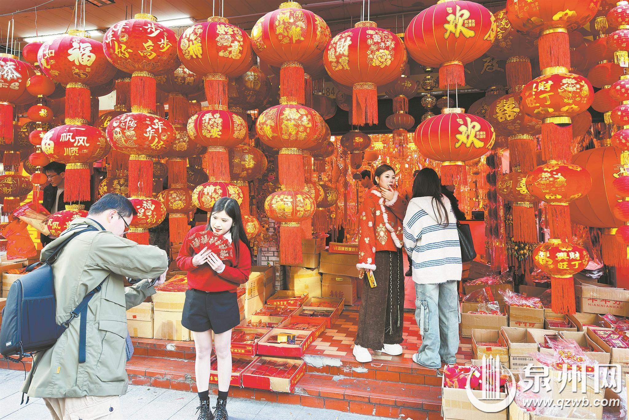 新春将至,年味渐浓,泉州各大年货市场迎来购销两旺的高峰期,处处洋溢着喜庆祥和的节日氛围。图为昨日,中心市区天后路的年货商铺内格外热闹,琳琅满目的年货商品整齐陈列,大红的装饰、精致的节庆好物相映成趣,满眼皆是红火年味,市民们精心挑选着心仪的年货,将满载祝福与心意的年货收入囊中,把这份热闹红火的新春气息带回家。
