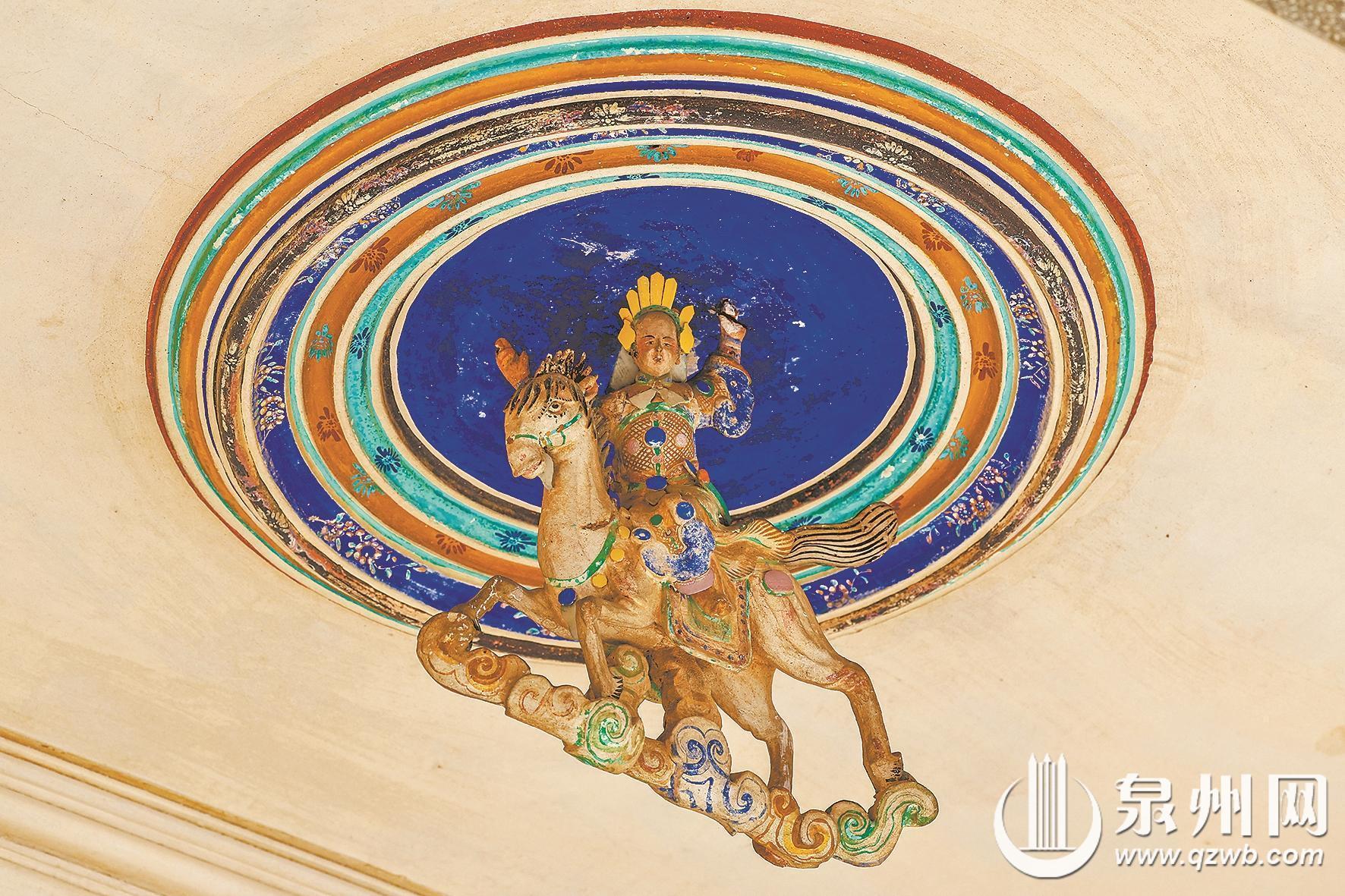 “除了地名,‘马’也渗透在日常生活方方面面。”刘平一举例说,在饮食中,有清脆的马蹄,有泉州特有的形似马蹄的马蹄酥、鲜香的马鲛羹、下酒菜马面鱼;女孩子常扎的辫子因形似马尾而被称为“马尾辫”;传统福船上的十二生肖标记中,“马面”代表舱面甲板,帮助船员迅速分工、高效协作。此外,石雕、砖雕、泥塑、木雕、线雕、剪瓷雕……更多的“马”元素,隐藏在泉州的建筑中,或镌刻忠义故事,或寓意吉祥如意。在泉州开元寺东塔须弥座西北向就雕刻着“经来白马”的生动场面:左侧文士拱手行礼,中间双僧合十相迎,侍从牵马跟随,马背驮着置于莲座之上的经卷,整体构图庄严而祥和。