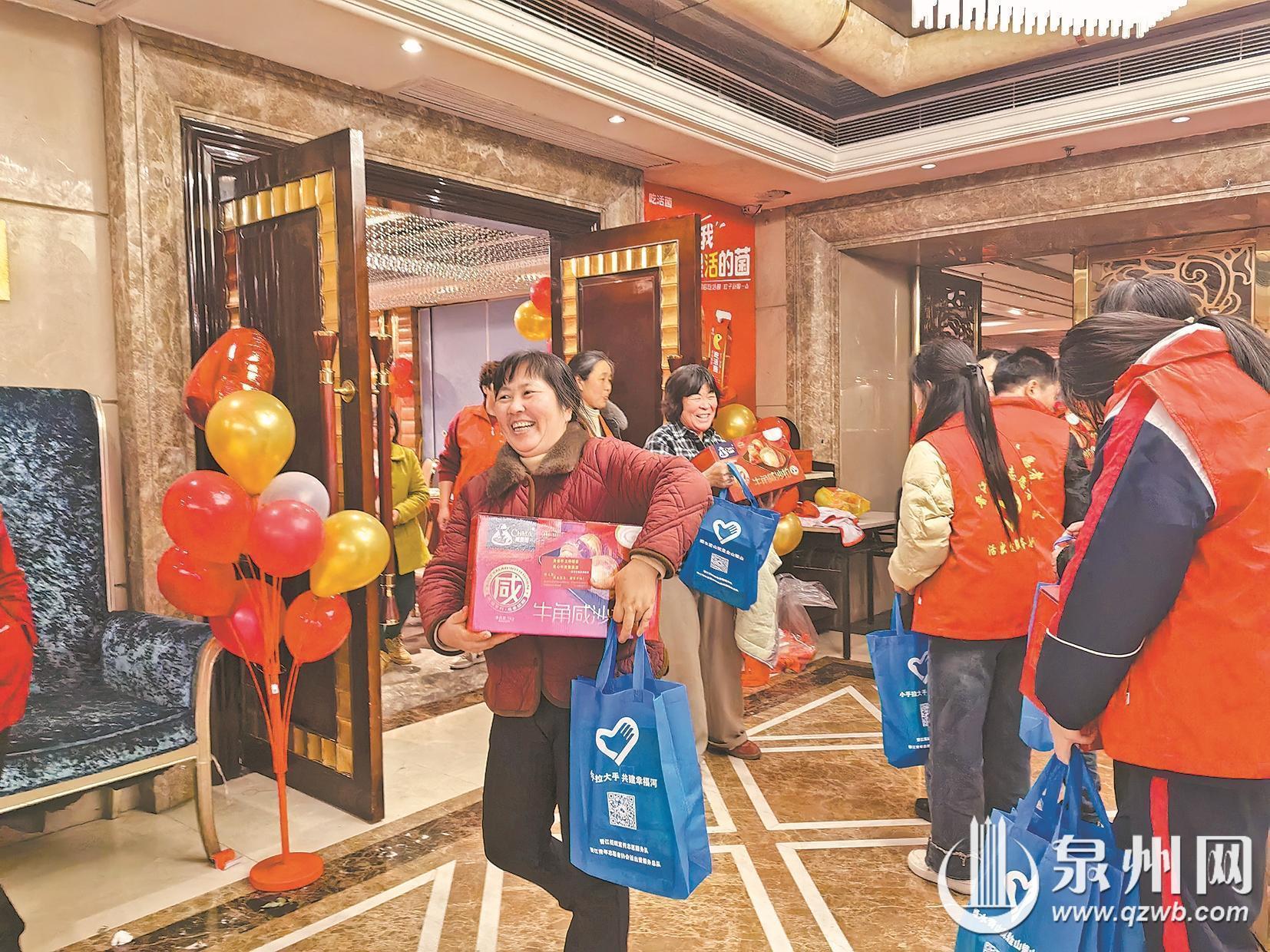 “今年过年没回老家,老家的年也没有泉州的热闹。”来自四川的老杨在晋江当环卫工人20年了,老伴也是环卫工。拿着爱心年货的夫妻俩笑得很腼腆,老杨说春节前除了单位慰问,爱心企业也关注到环卫工人,让他们感到特别温暖。