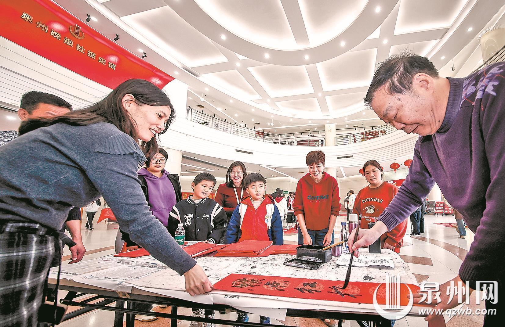 昨日上午,泉州晚报大厦一楼大堂人声鼎沸、墨香四溢,书法家们笔走龙蛇,市民们喜领春联,现场年味浓浓。连续举办了20年的“党报送祝福 春联抒真情”活动,再次与市民相约在报社。随着市民们欢天喜地地将春联、福字领回家,2026年党报送春联活动也圆满落下帷幕。