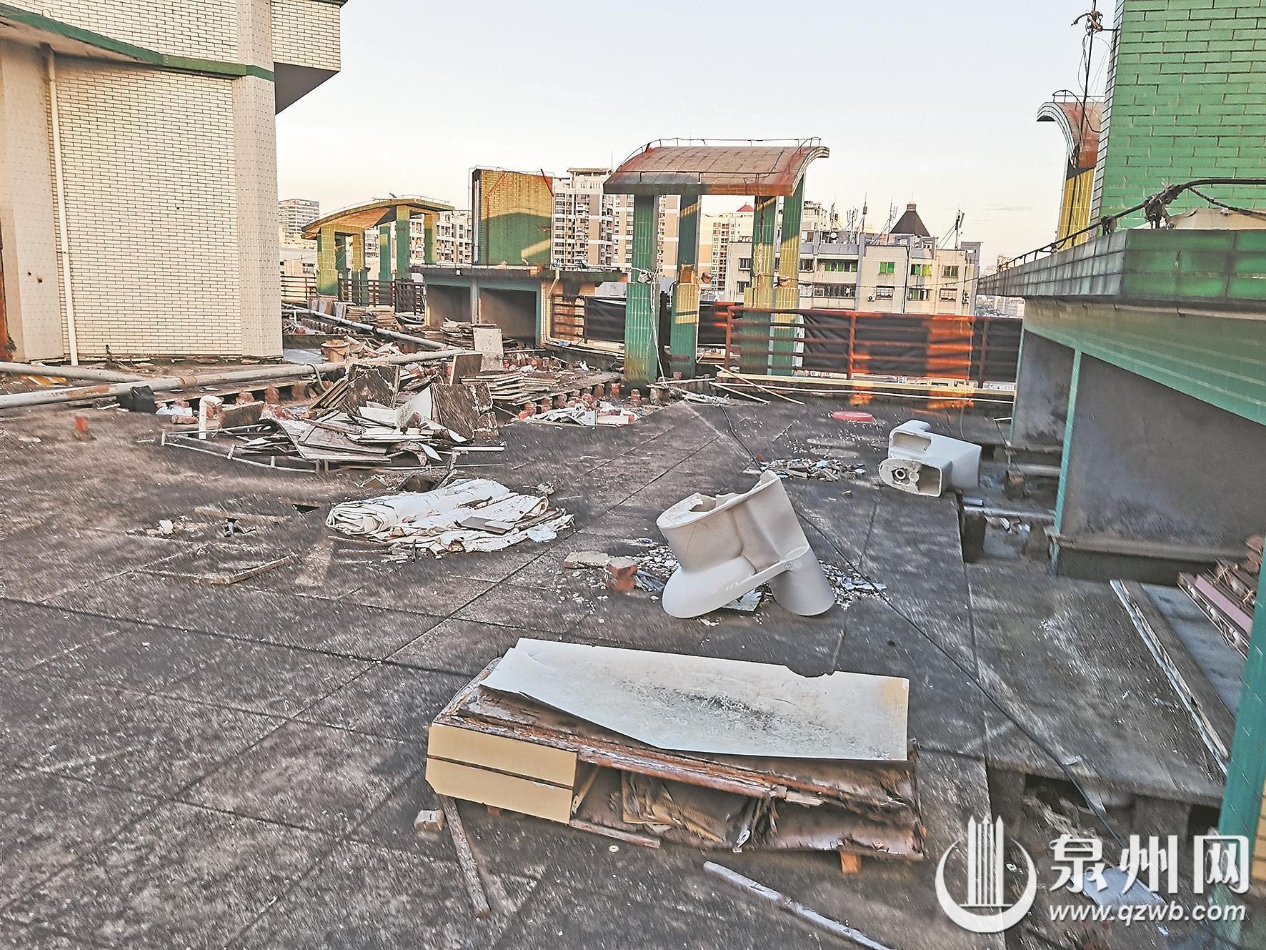 泉州网2月12日讯 (融媒体记者柯丽娟 文/图)近日,家住丰泽区阳光巴黎一期的庄先生致电泉州晚报社24小时热线96339反映,他去楼顶天台晾晒衣被时,发现天台上堆放着各类杂物,而且隔热层已严重破损,存在安全隐患。