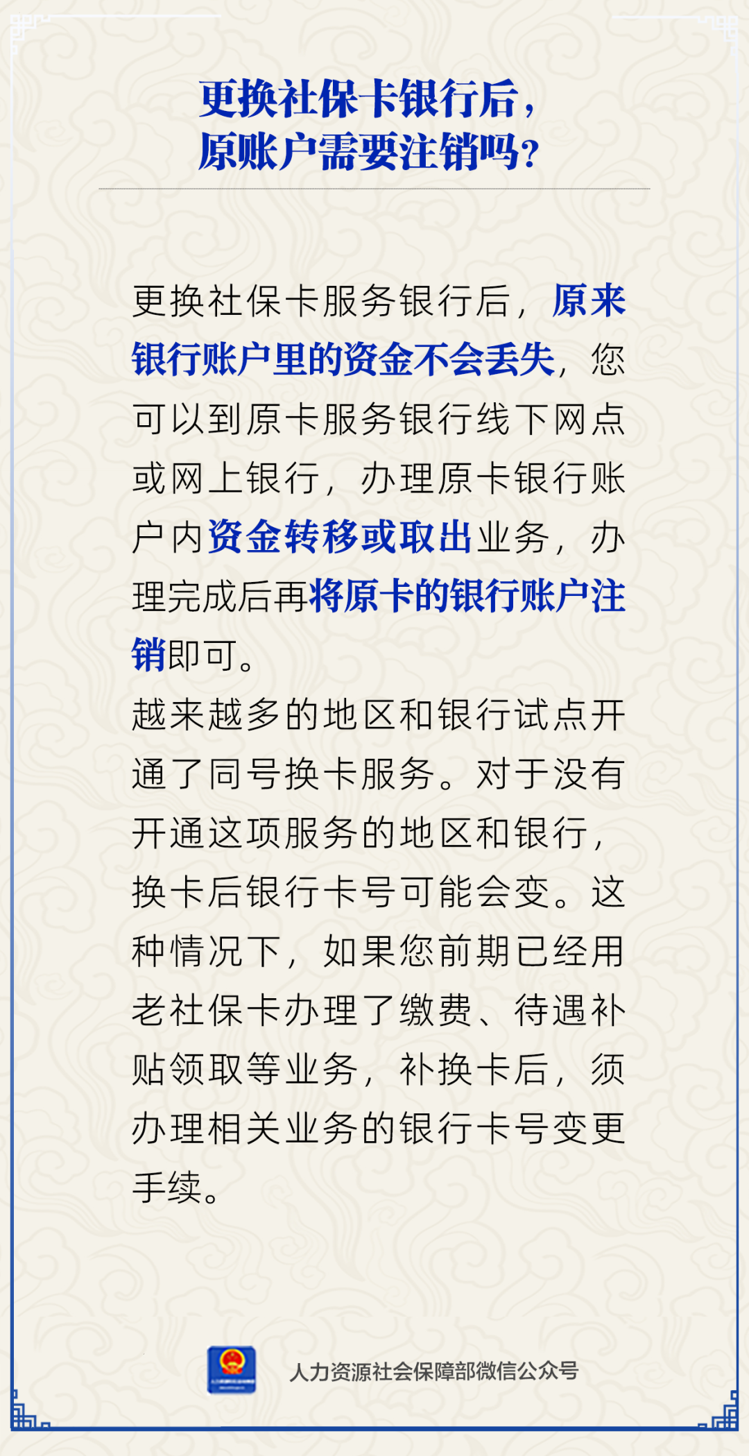 中新网2月12日电 更换社保卡银行后,原账户需要注销吗?人社部2月12日通过官方微信公众号作出解答。具体如下: