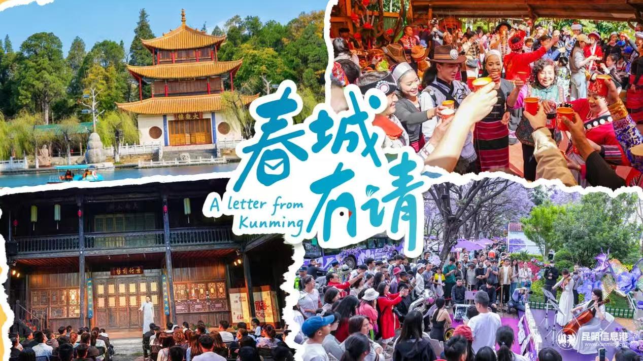 全球友人,可在Facebook、X、TikTok、YouTube 等海外社交平台,带话题#ALetterfromKunming 发布对昆明的期待、记录与昆明的美好相遇,以及报名参与“A Letter from Kunming春城有请”四季主题体验活动。