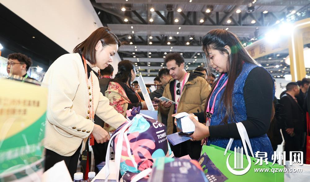 国外客商在挑选泉州市生产的纸巾(林劲峰 摄)