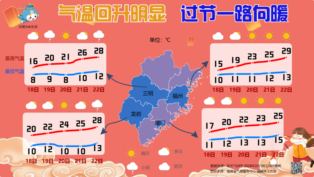 福建气温回升明显,一路向暖