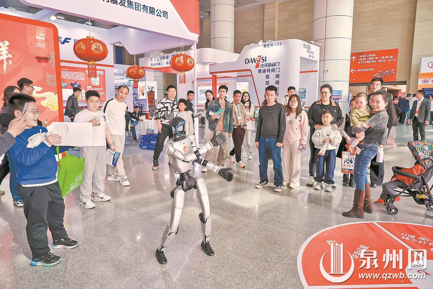 新春元素与科技趣味点亮展会现场,刚刚亮相春晚的宇树科技机器人灵动表演、智能机器狗展示高难度动作,科技互动体验区前围满了观展人群;“马上小成功”IP萌趣亮相,与南安市春节文旅主题活动呼应,年味、文旅味、产业味相得益彰;“南安优品”特色展区陈列着本土农特产品,让八方客商在洽谈商机之余,感受南安地道风物。