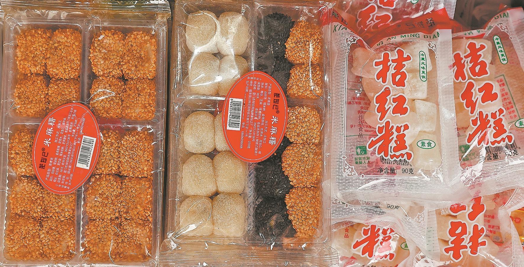 “碗糕笑,年兜到;甜粿圆,好过年;龟糕甜,福寿延;上元圆,合家团;贡糖脆,皇恩惠;桔红糕,珍味绕……”泉州的春节就是要“甜”一下,市民的客厅里摆上了古早味的甜食。泉州的甜食多采用糯米、花生、芝麻、红糖为食材,口味以软糯香甜为主,是春节茶配必备。