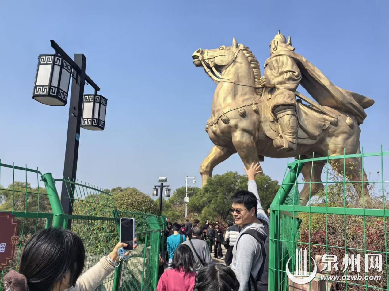 泉州网2月20日讯(泉州网记者 朱远娥 苏维斯 文/图)正月初四,泉州丰泽大坪山上人流如织,位于山顶上的郑成功骑马塑像,成为马年新晋的网红打卡点。连日来,数万游客与雕塑的巨手击掌合影,希望在新春讨个“马上成功”“一定成功”的好彩头。