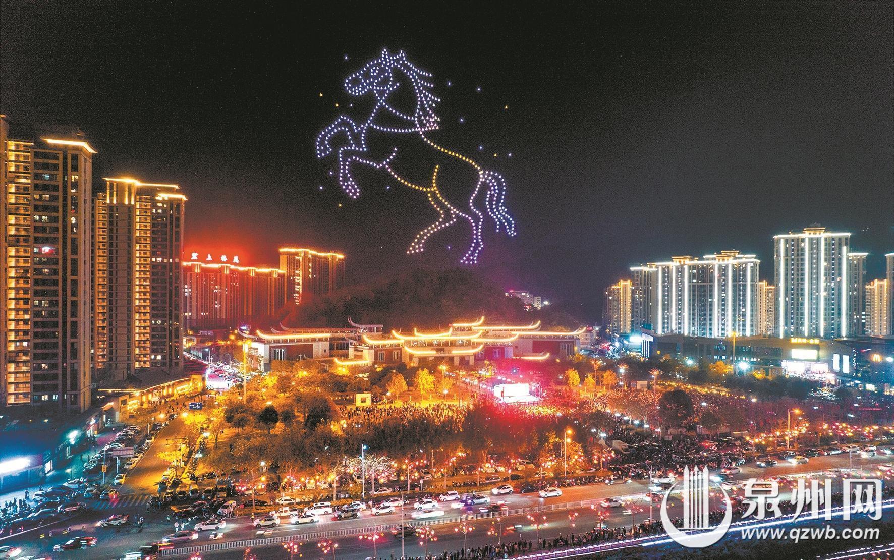 正月初四晚,永春县城香都广场流光溢彩。无人机编队升空作画、万盏灯阵绚丽铺展,市民共放孔明灯祈福,永春功夫好戏精彩亮相,以“科技+文化”打造沉浸式新春盛宴,灯火温暖盛大,年味十足。(融媒体记者陈小阳 通讯员陈志鹏 颜彩虹 摄)