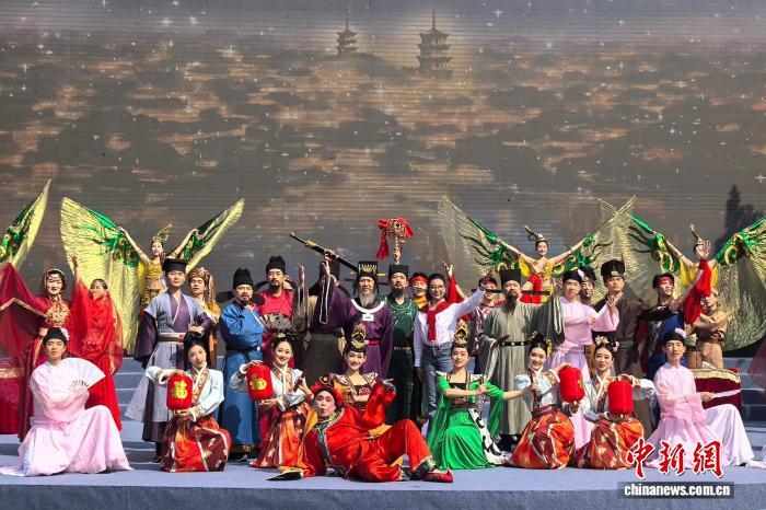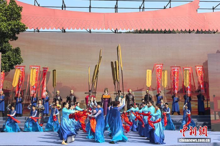 2月22日,《风祈千年》音诗画主题舞台剧在福建南安九日山风景区上演,再现宋元祈风仪典盛景。中新网记者 孙虹 摄