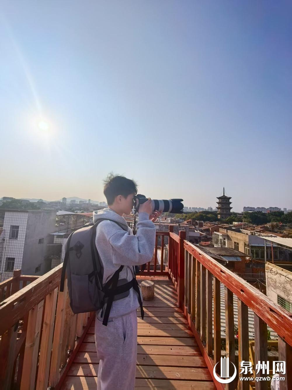 张先生与泉州的缘分,始于多年前的一段工作经历。“曾经在晋江安海一家食品厂工作过,那些日子里,闽南的红砖古厝、古早风味,都成了刻在心底的记忆。”张先生坦言,此次带着家人来泉州,既是圆自己的重游之愿,也是想让家人走进这座自己曾生活过的城市,感受不一样的闽南风情与春节氛围。四天时间里,一家人的足迹遍布泉州多地,从石狮的滨海古寺到晋江的侨村古厝,从非遗展馆的匠心传承到古城街巷的烟火寻常,每一处风景都让他们驻足流连。其中,最开心的要数张先生的儿子张恒翌,小伙子今年读初中二年级,爱好摄影的他刚买来一套专业的相机,旅游期间,他相机不离身,在超级能“出片”的泉州各网红景点,拍下不少精彩照片。