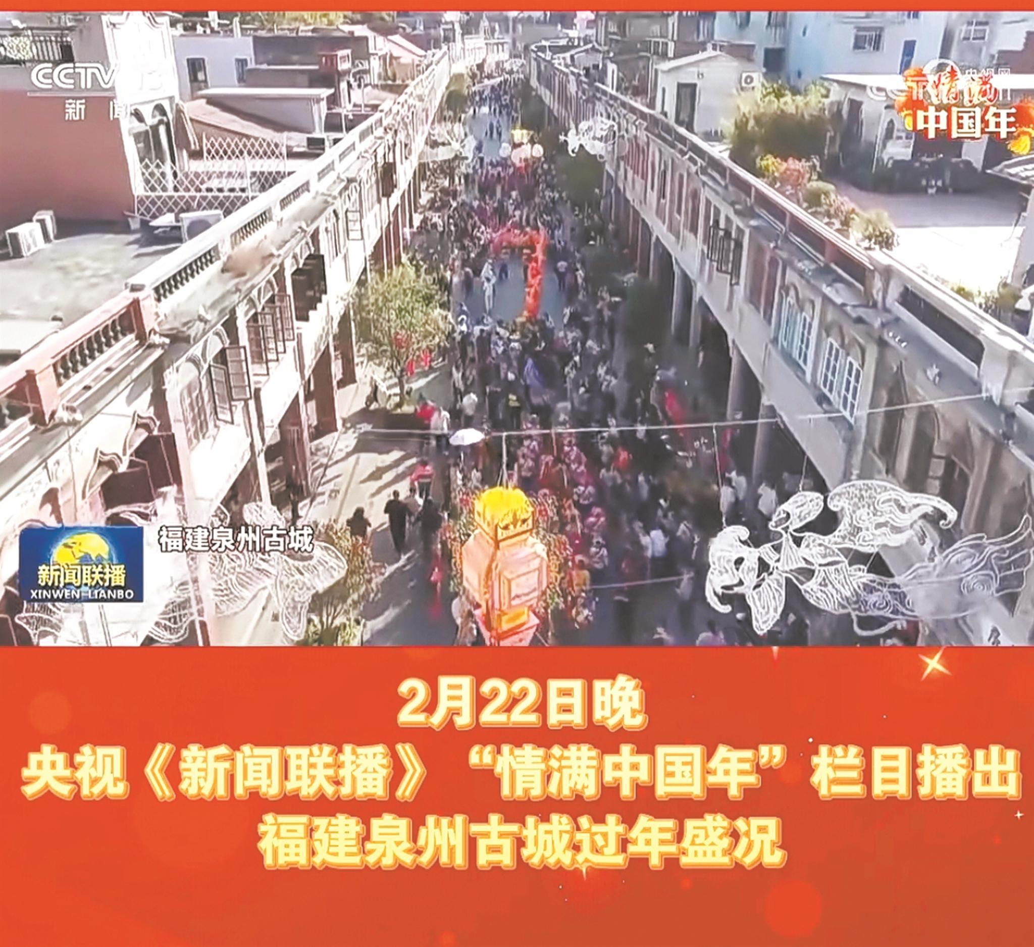主流媒体、新媒体高度聚焦。《来泉州甜一下——泉州文旅帮你请假》春节宣传短片全网播放量突破3.6亿次;央视总台《新闻联播》《新闻直播间》《朝闻天下》等栏目以及人民日报、新华社等国家级主流媒体,高频次、多角度聚焦泉州春节非遗街秀、世遗年味、特色花灯、文旅消费、国际传播等亮点,报道超100次。泉州智造机器人登上央视春晚,五祖拳、白鹤拳登上央视非遗晚会,打城戏登上央视戏曲晚会,簪花围亮相全球华人华侨春节大联欢,《马到成功·中国年》《远方的家》《三餐四季》等特别节目持续关注泉州文旅。“泉州文旅才是真的懂爱你老己”“游客专门来泉州体验非遗年”“春节来泉州看非遗街秀”“在泉州拍了拍马上成功”等相关话题,多次登上抖音、微博等平台热门榜单。