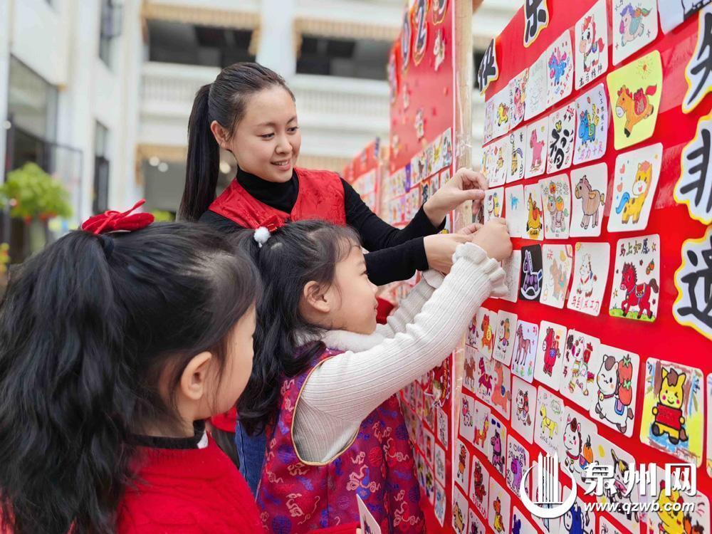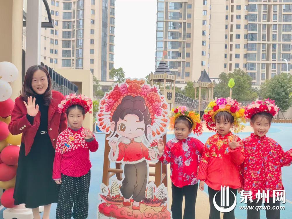 丰泽区博泽幼儿园以“簪花迎福马,博泽启新程”为主题,以“蟳花四韵”为载体,融闽南特色、马年意趣与童趣巧思于一体,簪花纳福、朱砂启智、贴叶寄愿、插花筑美、五谷签到、拓印百福、游园寻福、马年趣味游戏等轮番上演,处处洋溢着热闹欢快的氛围。