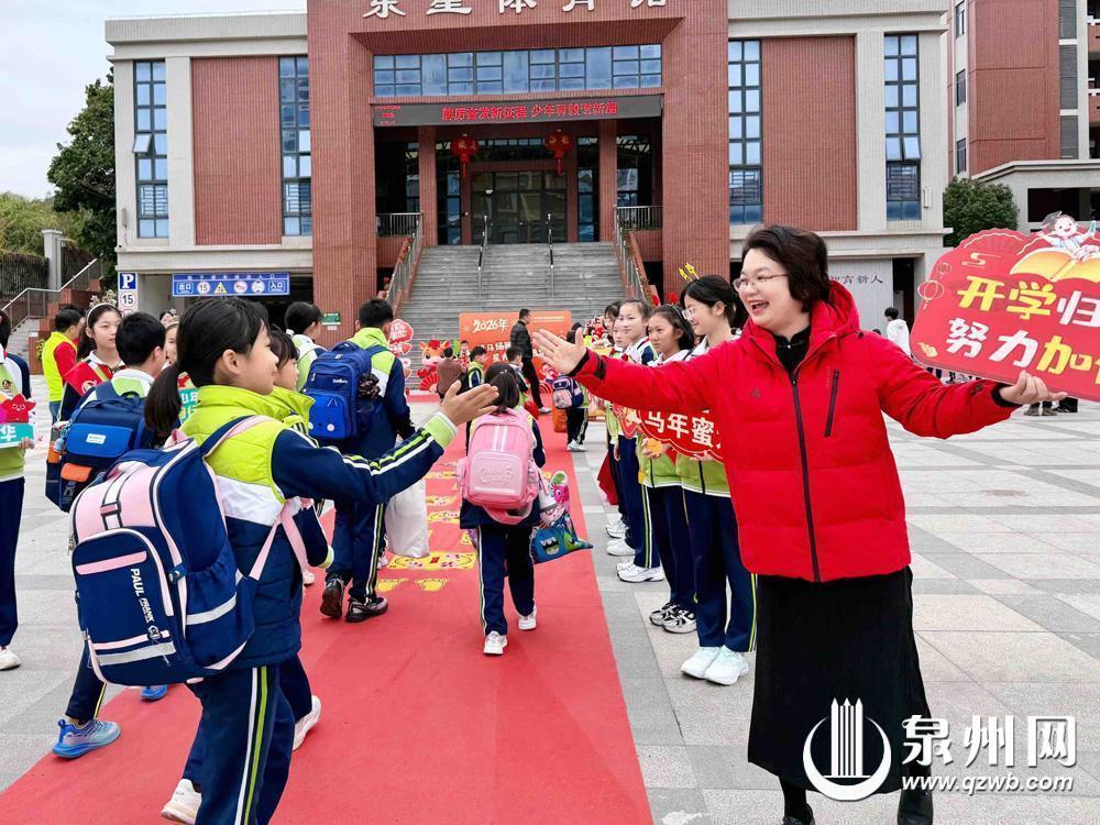 泉州网2月27日讯(融媒体记者 龚翠玲 通讯员 蔡国清 吴婷婷 陈利财/文 学校/供图)2月26日是泉州市各中小学、幼儿园春季开学首日,沉寂了一个寒假的校园,因一张张朝气蓬勃的笑脸而瞬间“满血复活”。今年恰逢丙午马年,不少学校别出心裁,巧妙地将马元素融入开学现场,将“仪式感”拉满,用文化的浸润、温暖的期许和欢乐的互动,为孩子们铺就了一条通往新学期的“星光大道”。