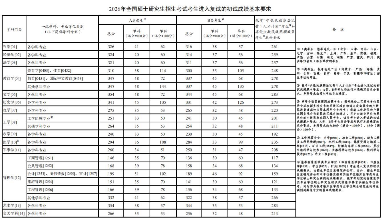 今天起,2026年全国硕士研究生招生考试初试成绩陆续可查。教育部发布《2026年全国硕士研究生招生考试考生进入复试的初试成绩基本要求》(国家分数线)。教育部要求各招生单位根据《2026年全国硕士研究生招生工作管理规定》,在国家分数线的基础上,自主确定并公布报考本单位的考生进入复试的初试成绩要求及其他学术要求。