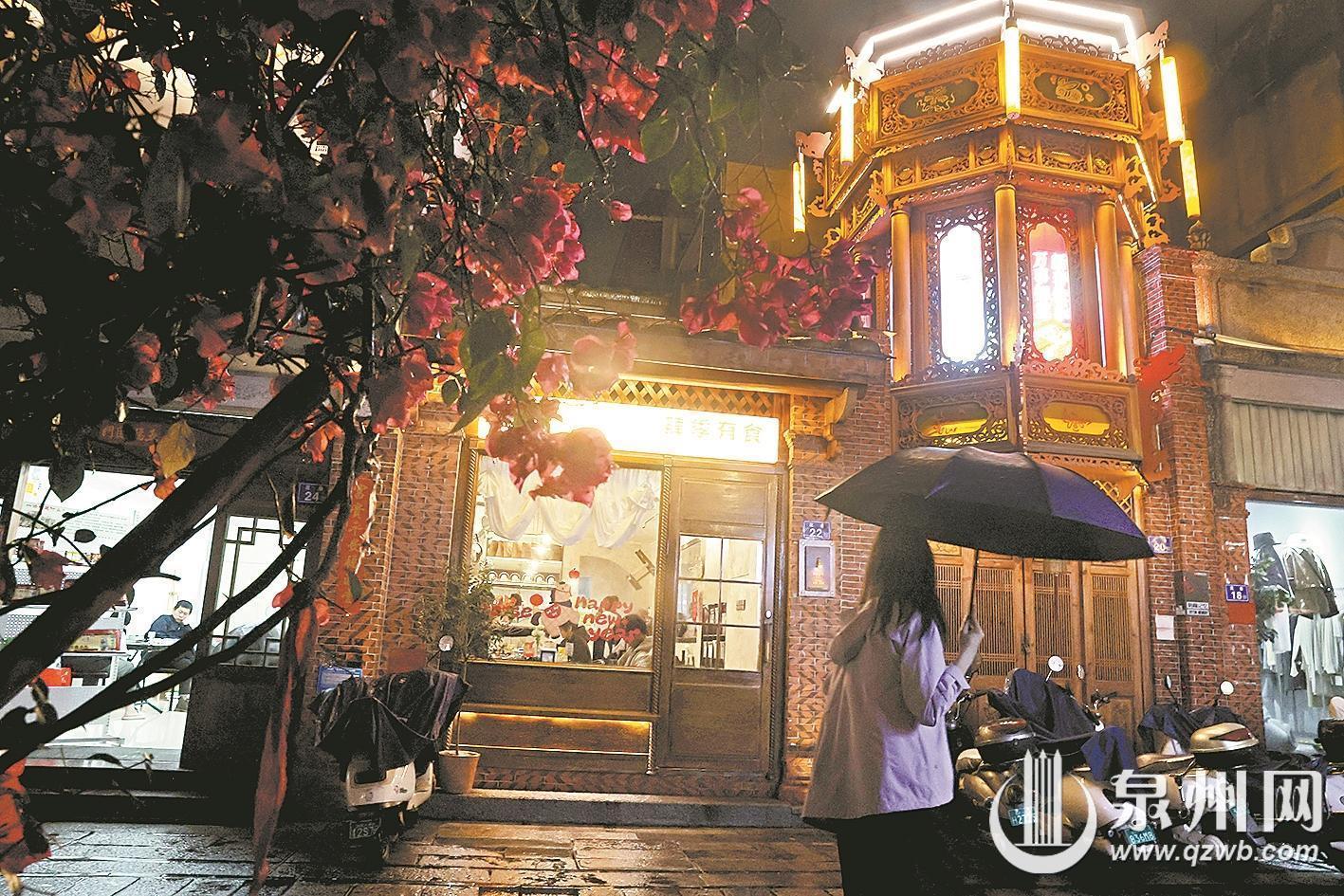 “虽然下着雨,但别有一番味道,灯光在雨丝里特别柔和,拍出来的照片很有感觉。”来自厦门的游客陈女士一边收起雨伞,一边用手机记录着眼前的景致。
