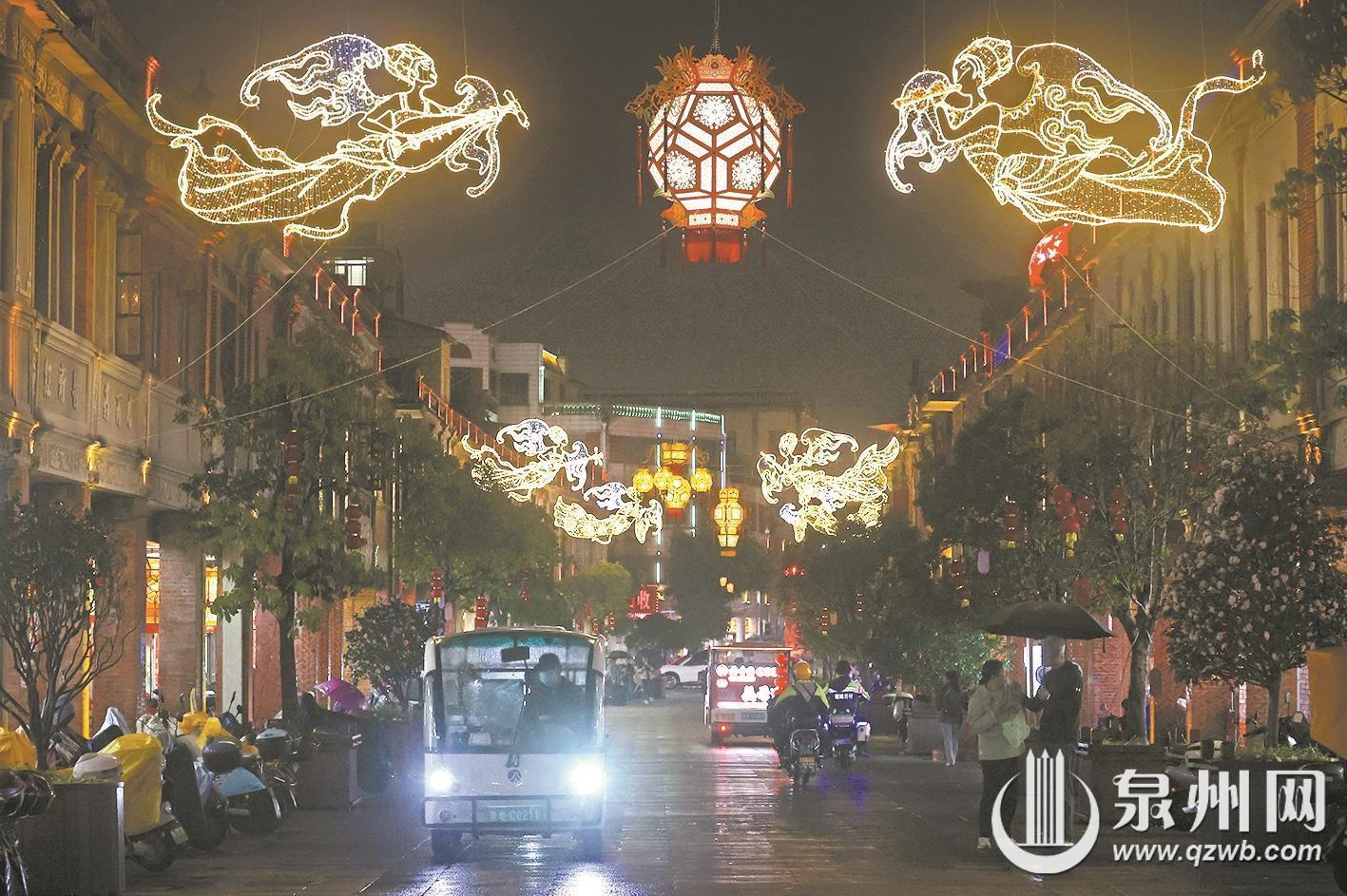 值得一提的是,除了挂灯,泉州府文庙广场前的“喜事多多”大型座灯、花巷89号傅宅广场前的特色生肖主题座灯、威远楼广场前的“世界美食之都”等大型座灯昨晚纷纷正式亮灯。这些主题灯座,以传统彩扎工艺演绎祥瑞寓意,灯光流转间传递主题。