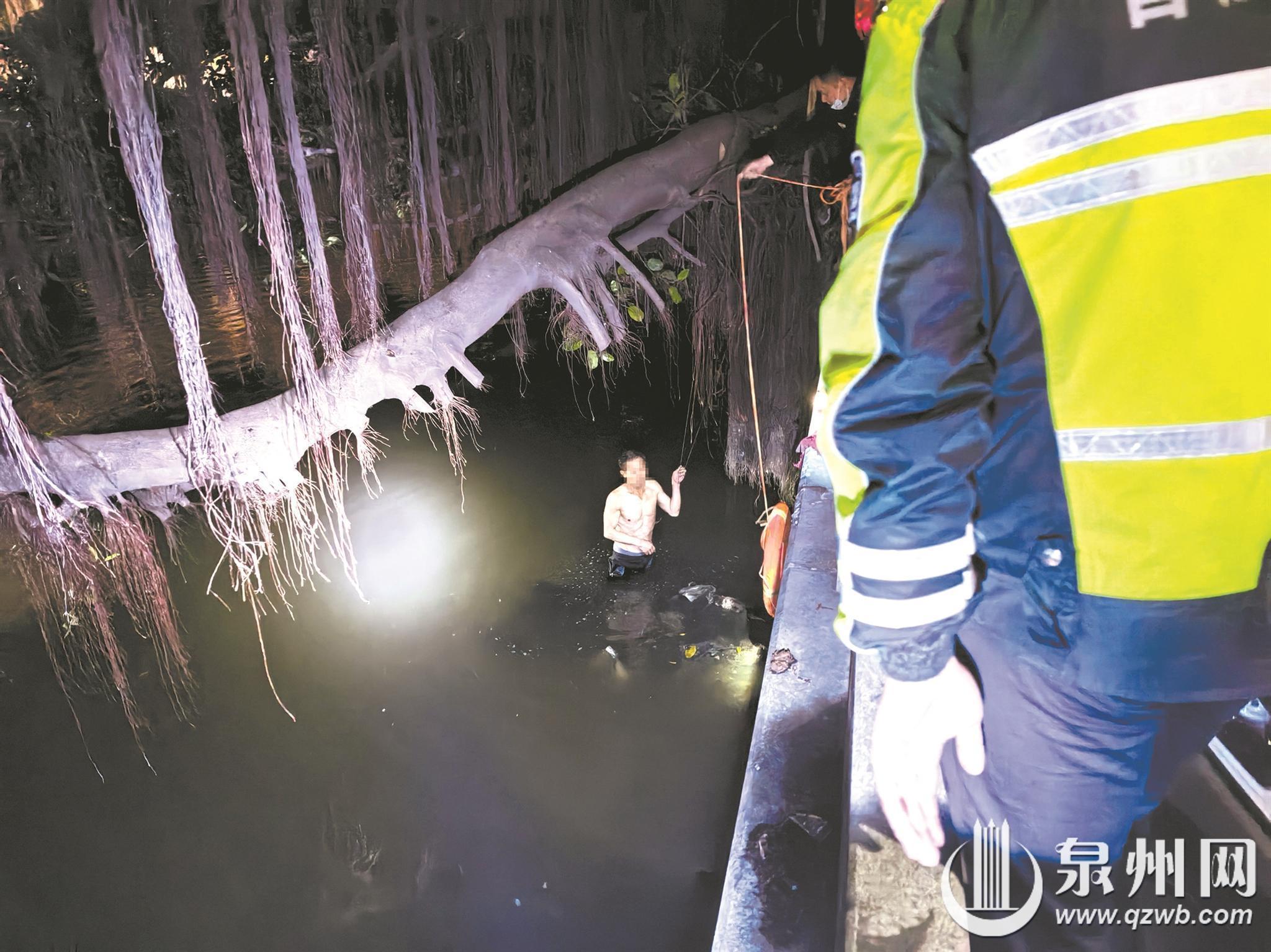 泉州网3月3日讯 (融媒体记者吴水保 通讯员李贻鑫 文/图)日前,在晋江陈埭,一名男子驾车时遇到交警检查,竟然跳进冰冷河水中,消防救援人员与交警部门联动施救,成功将该男子安全救起。