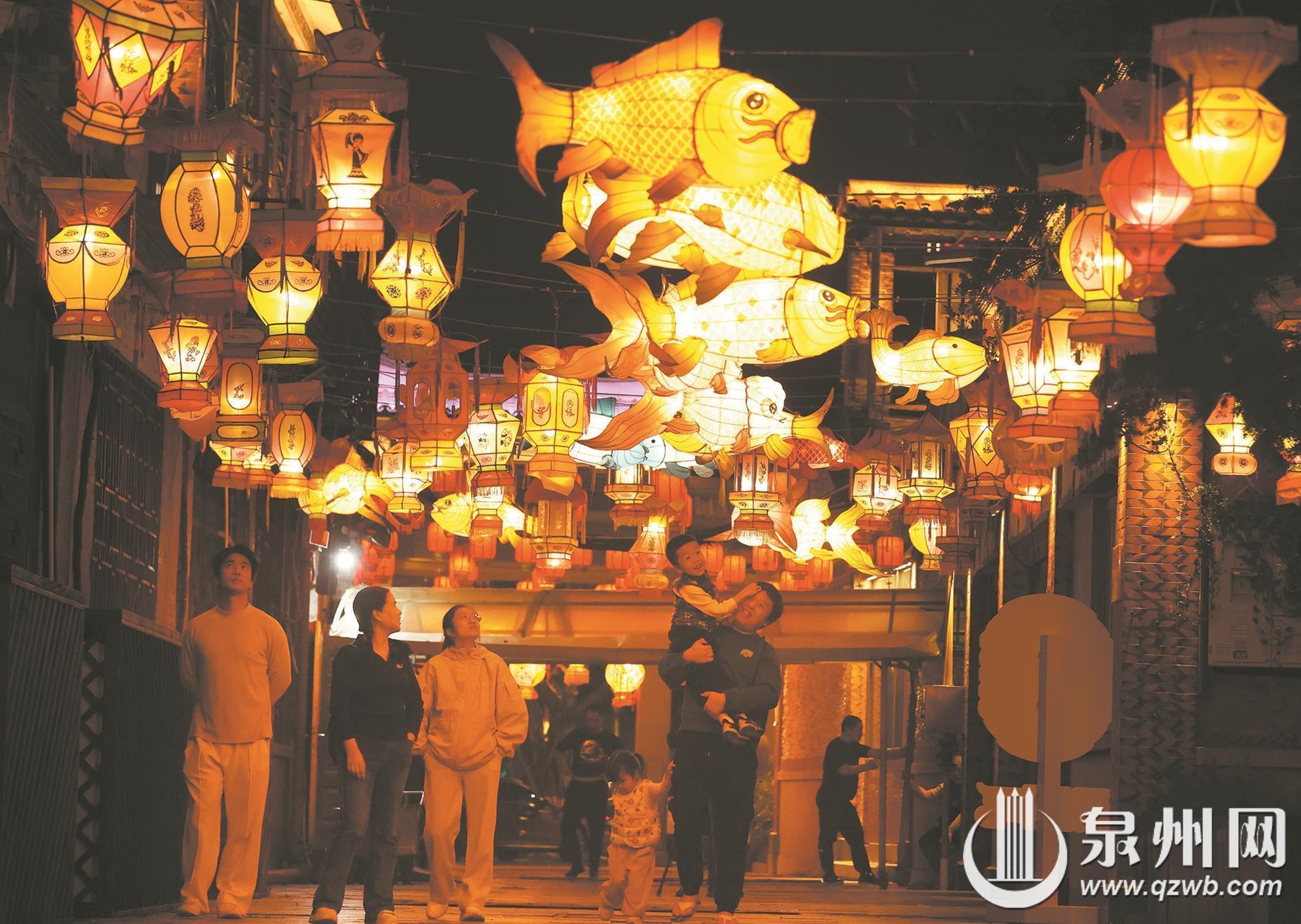 泉州网3月3日讯(融媒体记者张晓明 陈明华)非遗大师匠心制作的花灯、侨厝前的生肖花灯、巷弄间的巨型灯影、东西方建筑碰撞出的亮灯美景……昨日,记者漫步于鲤城花巷、金鱼巷、中山路等地,只见灯影与骑楼红砖古厝交相辉映,将千年刺桐城的烟火气与诗意晕染成动人模样。