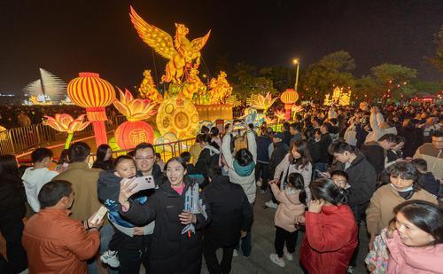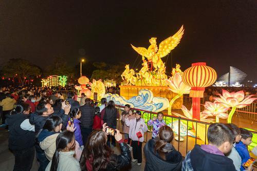 泉州网3月3日讯(记者 陈起拓 摄)3月3日,元宵佳节,夜幕降临时,泉州台商投资区“潮涌滨海·骏程万里”马跃滨海元宵灯会流光溢彩,人们从四面八方聚集而来,共享盛世盛会。海上丝绸之路艺术公园·亚洲园里人头攒动,热闹非凡。值得一提的是,这里的陆上主题座灯《马到成功》因其骏马添翼的造型而备受大家的喜爱。