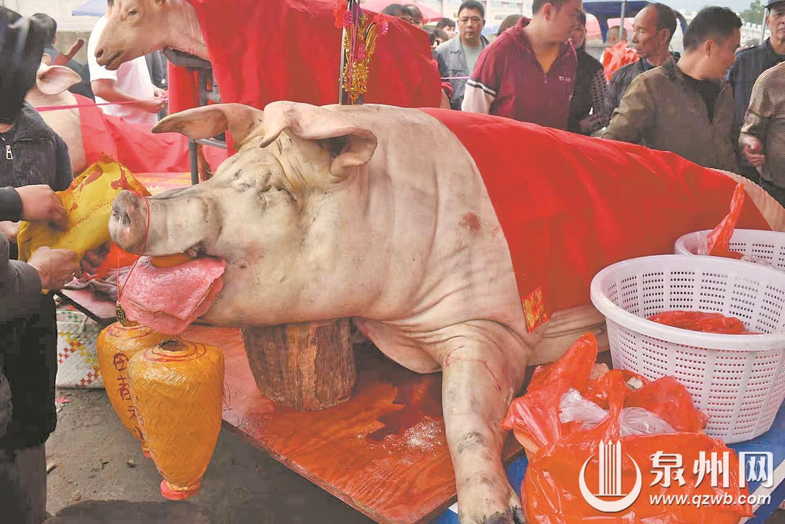 泉州网3月5日讯 (融媒体记者张晓玲 通讯员白南华 文/图)3月3日,安溪龙门榜头村华汤白氏宗祠举行了“赛大猪”民俗活动。