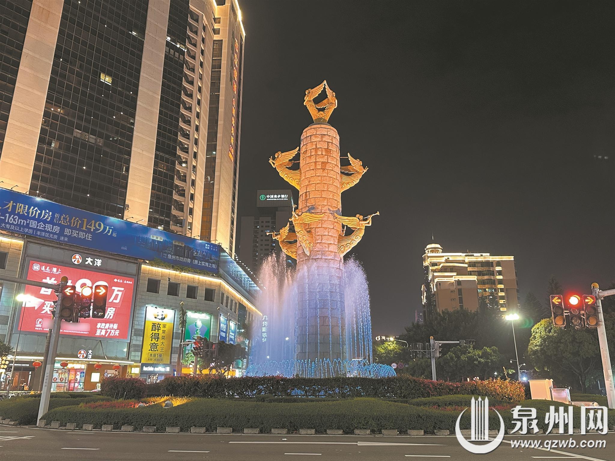 泉州网3月5日讯 (融媒体记者张小玲 文/图)近日,市民陈先生致电泉州晚报社24小时热线96339反映,前几天晚上他途经泉州市区温陵路与泉秀街交叉路口,惊喜地发现市标“飞天迎宾”城雕的喷泉重新开放。这处承载着泉州人记忆的地标重焕光彩,吸引不少市民驻足欣赏。