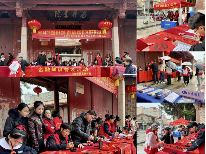1月31日,石井书院内暖意融融,墨香四溢,“书院墨香承古韵,联红马年贺新春”活动在此温情启幕。兴业银行泉州分行联合养正中心小学、晋江市养正中学、安海镇兴胜社区,精心设置书法赠联与金融宣教两大区域,让传统文化与金融安全双向奔赴。