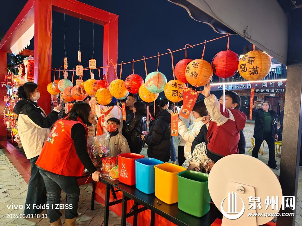 泉州网3月6日讯(融媒体记者王金植 通讯员吕百冠 文/图)元宵佳节期间,洛江区万安、双阳街道各社区张灯结彩、喜气洋洋。高高挂起的红灯笼下,一条条五彩缤纷的灯谜迎风摇曳,将浓浓的年味与文明新风尚交织成一幅生动的节日画卷。