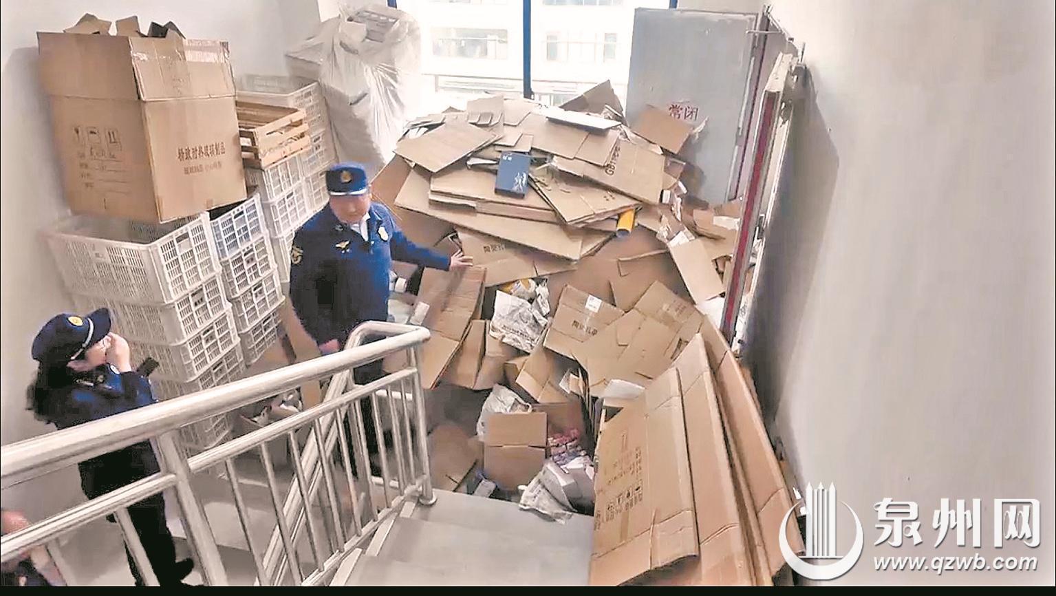 检查组采取逐层检查的方式,发现建筑内多层商户存在堵塞疏散通道、遮挡室内消火栓等问题。特别是在其中一层楼梯口处,检查组发现商户放置了大量的物品和纸皮堵住了疏散通道,导致无法通行。